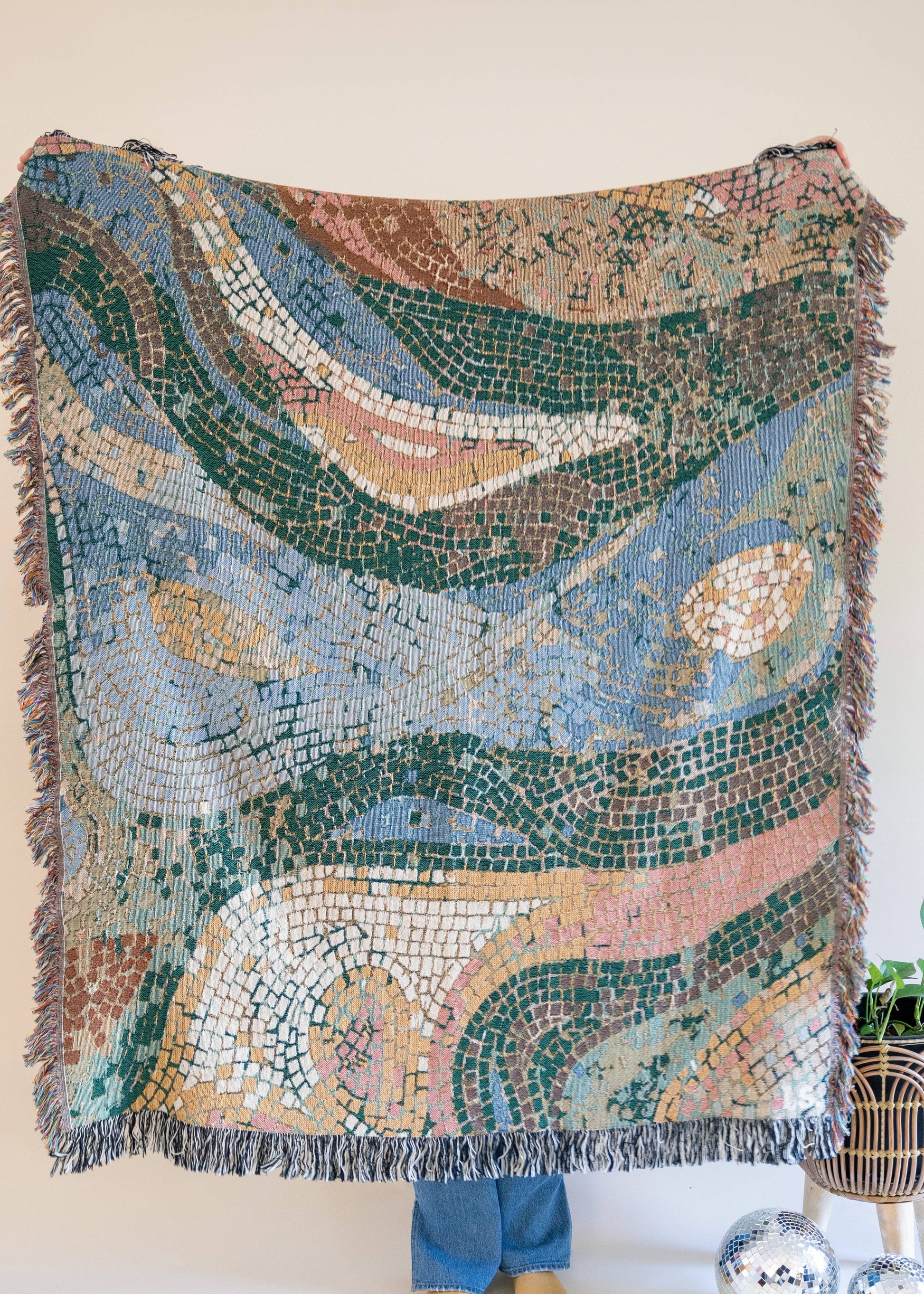 Timeless design meets everyday comfort in the Audrey Blanket. Measuring 50" x 60" and woven from 100% cotton in North Carolina, this tapestry-style throw is inspired by the intricate mosaic floors of York Minster in York, England. Its repeating geometric patterns create a striking yet versatile accent that feels both historic and modern. Durable, cozy, and made to last, the Audrey Blanket is also machine washable, making it as practical as it is beautiful. Use it as a statement throw on your sofa, a layer of warmth at the foot of your bed, or even displayed as art to bring architectural elegance into your home.