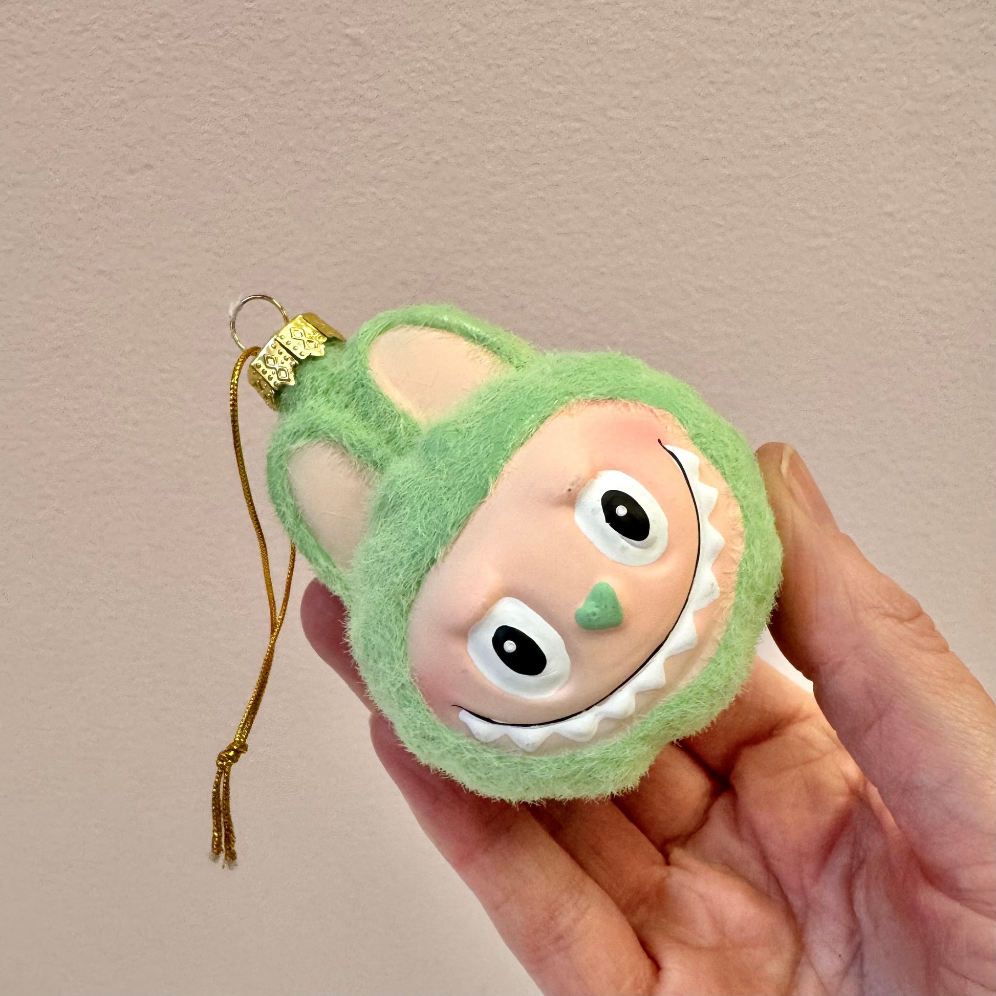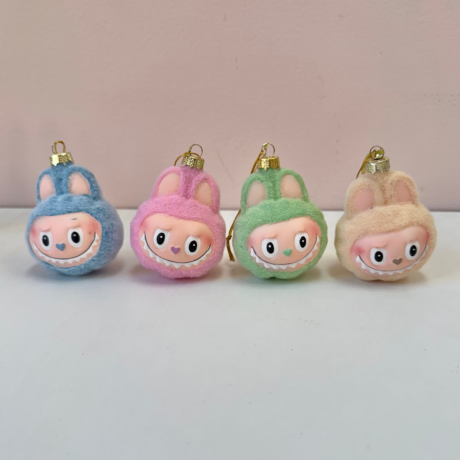 A fantastically whimsically fuzzy little monster ornament. Available in 4 pastel shades, each sold separately. Some shedding of fuzz will occur. Approx 2.5"L x 3"H