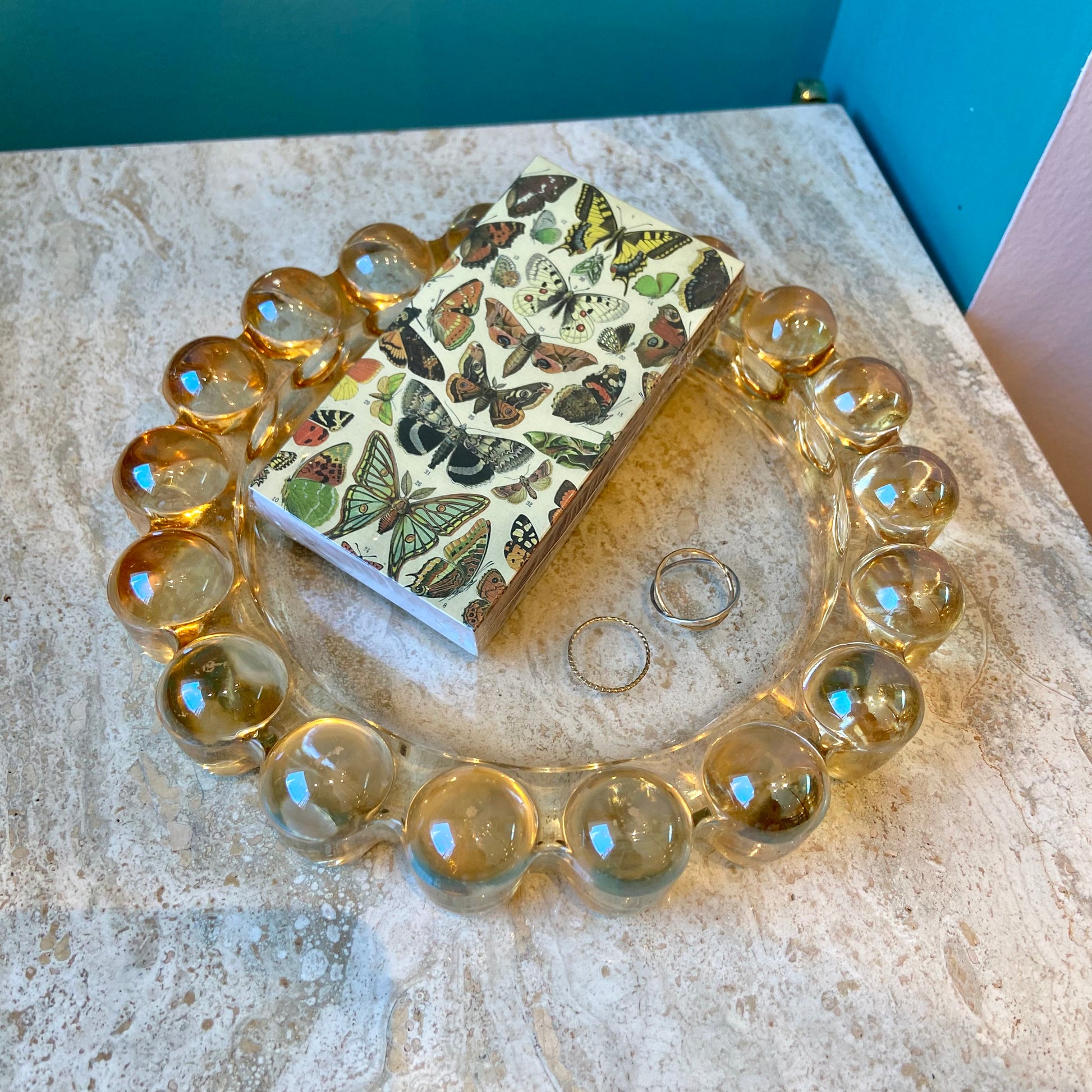 Lovely pale yellow glass boopie catchall dish. Circa 1980's.