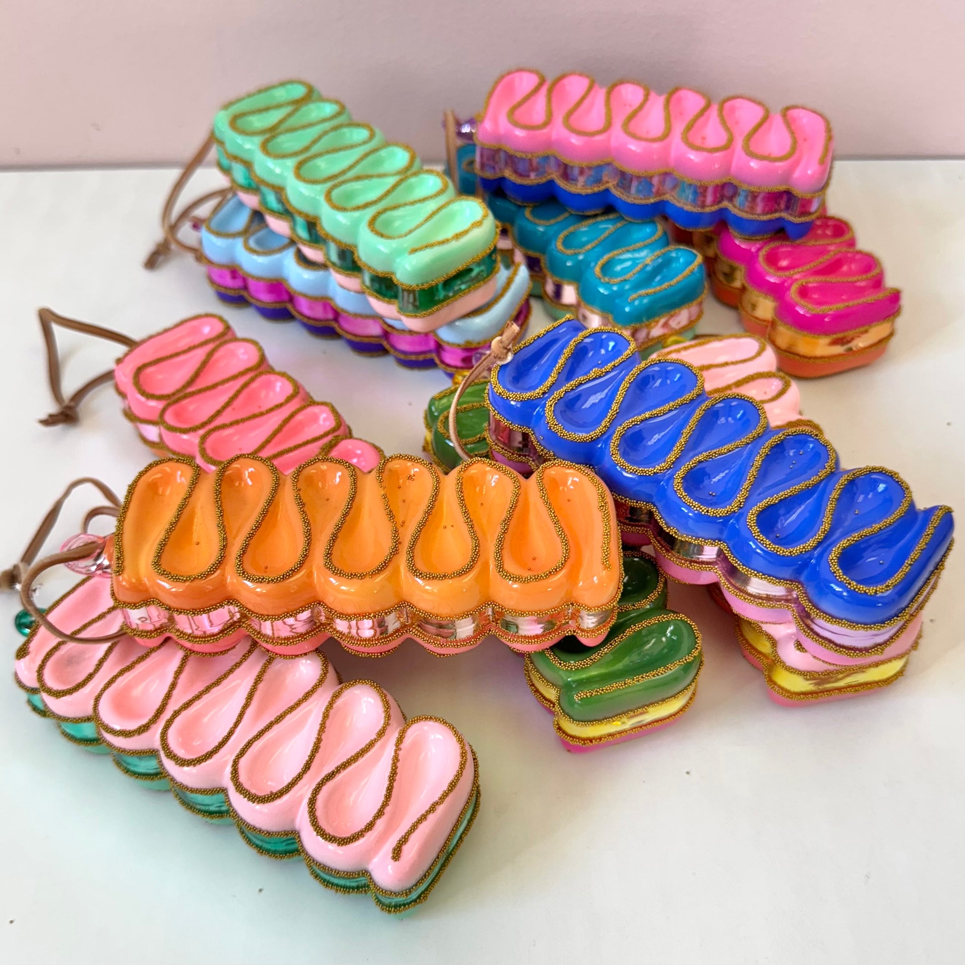 We will choose the color for you!! Each sold separately. The Ribbon Candy Ornament is meticulously crafted from glass and measures 2" x 5.25". Available in 12 different colors!!