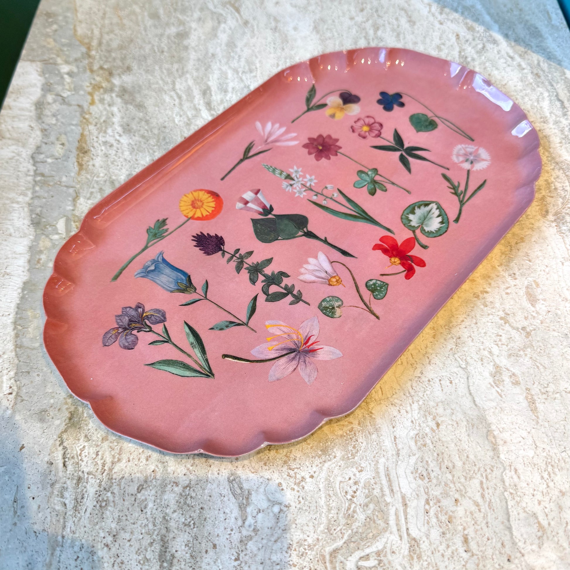 Festival of Flowers Scalloped Enamel Tray by Roomytown London