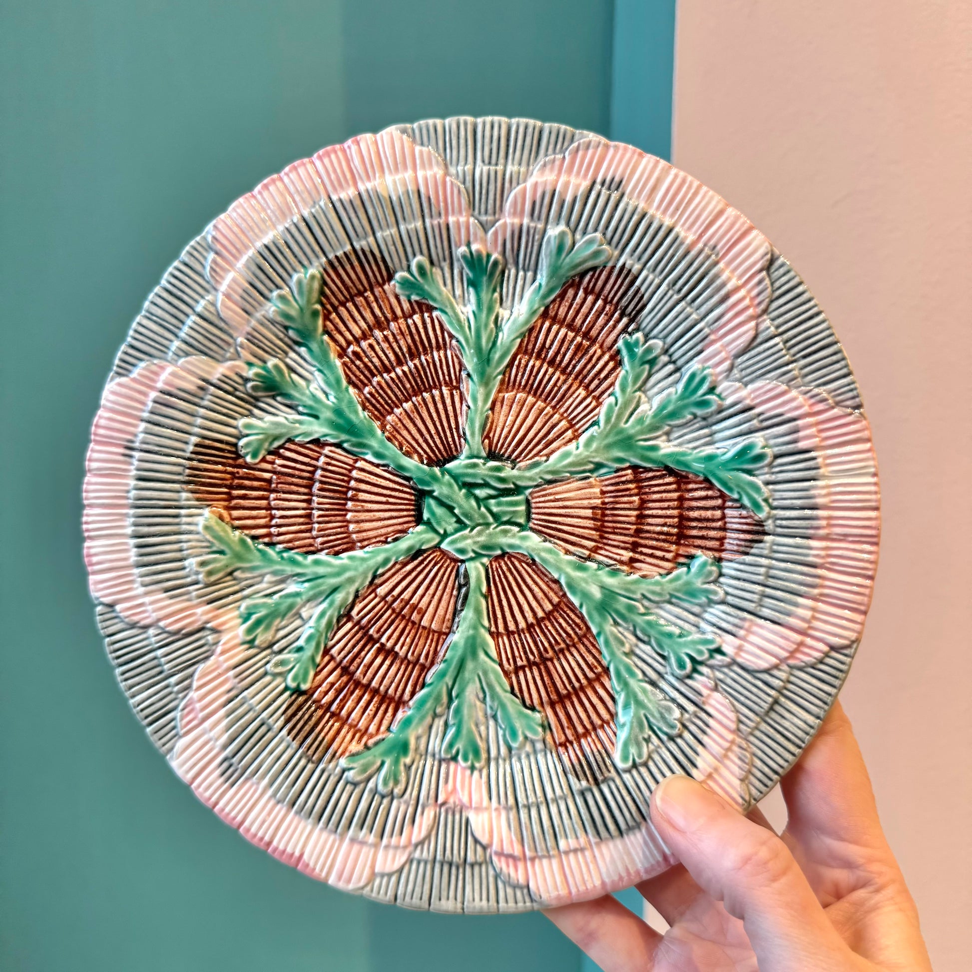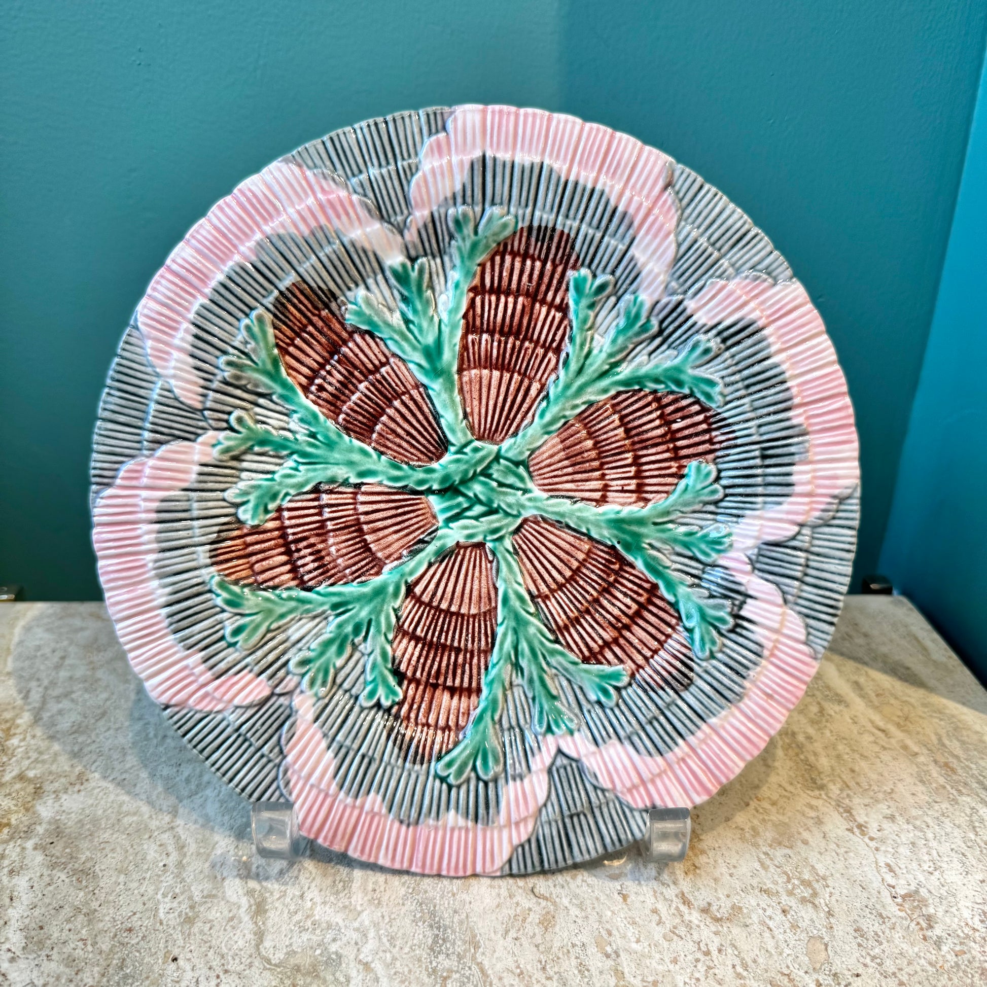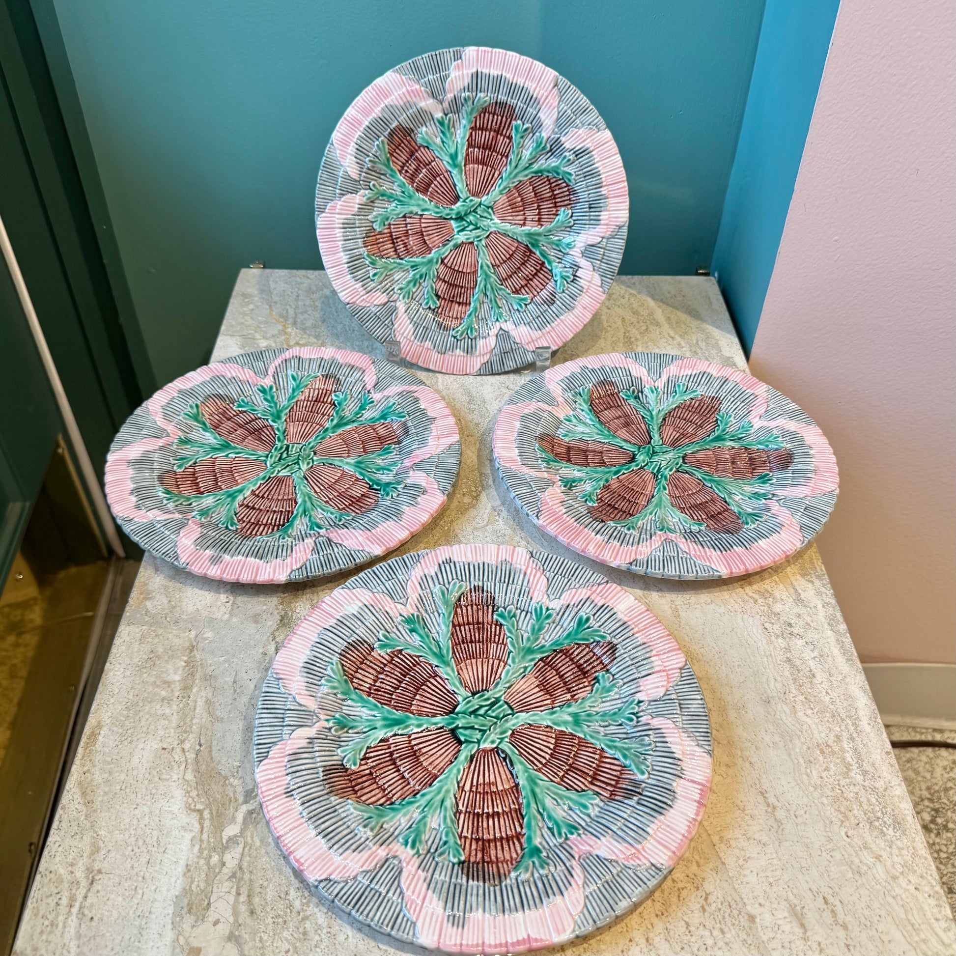 Antique Set of 4 Majolica Shell & Seaweed Appetizer Plates