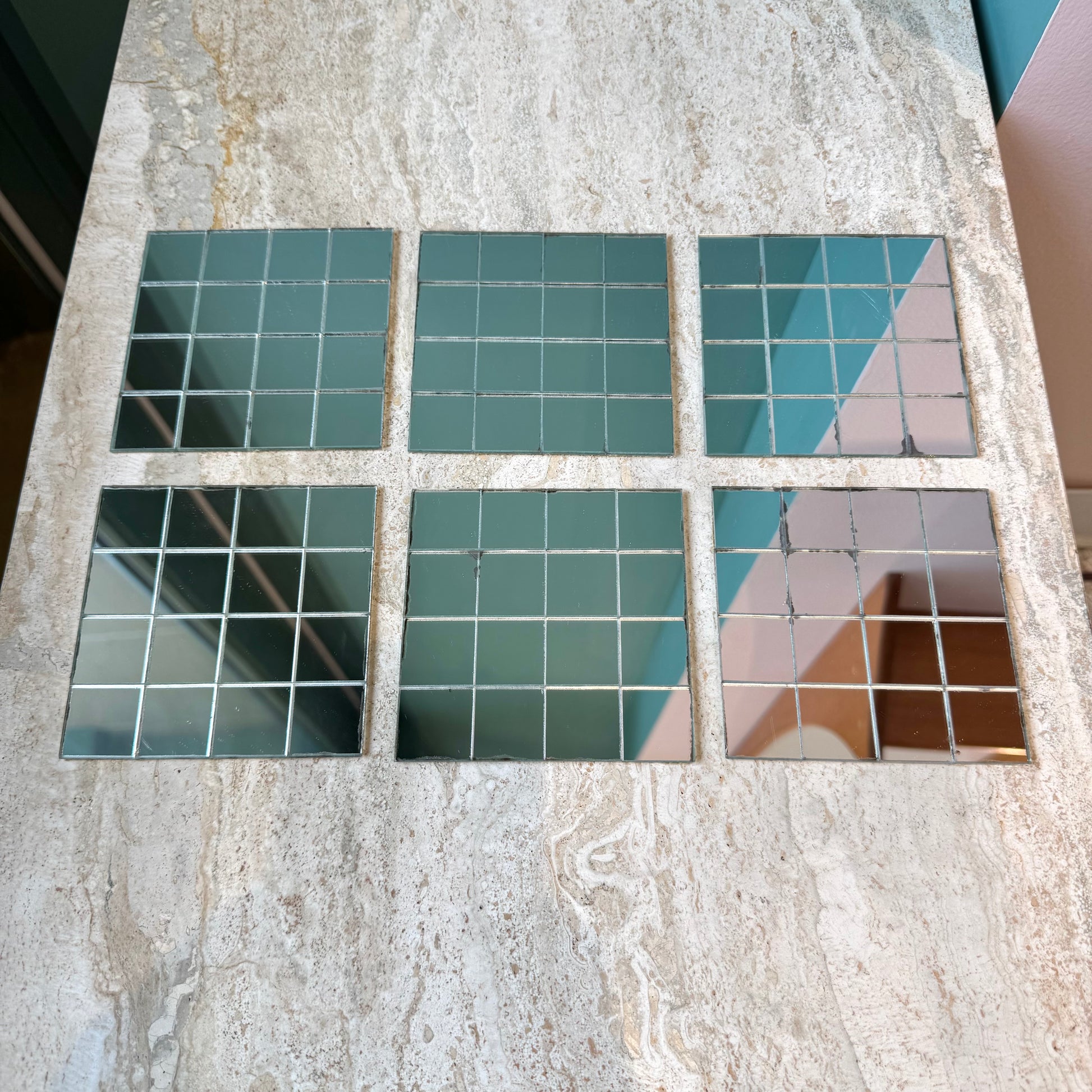 Set of 6 Vintage Mirrored Tile Coasters