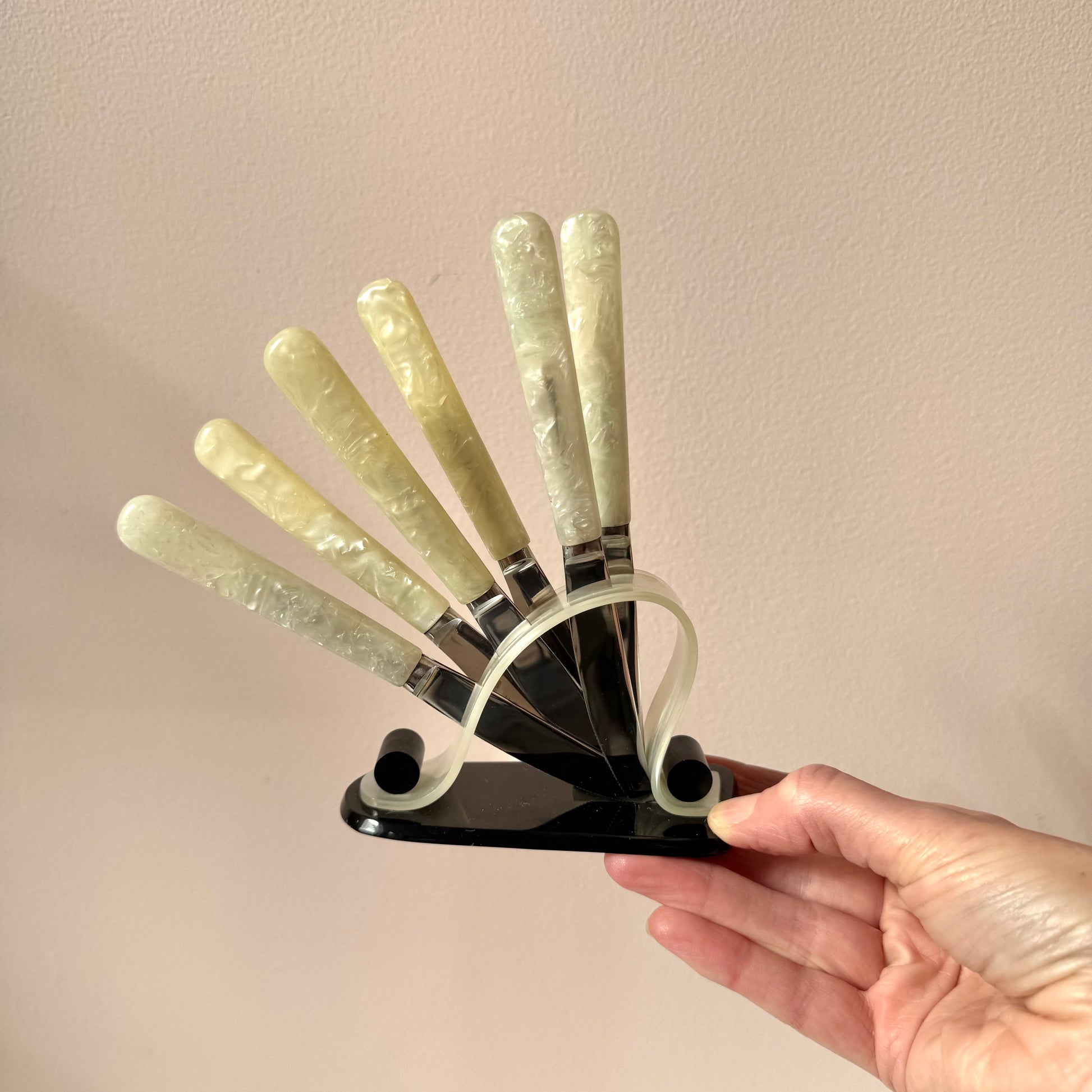 Vintage Art Deco Mother of Pearl Bakelite Fruit Knife Set