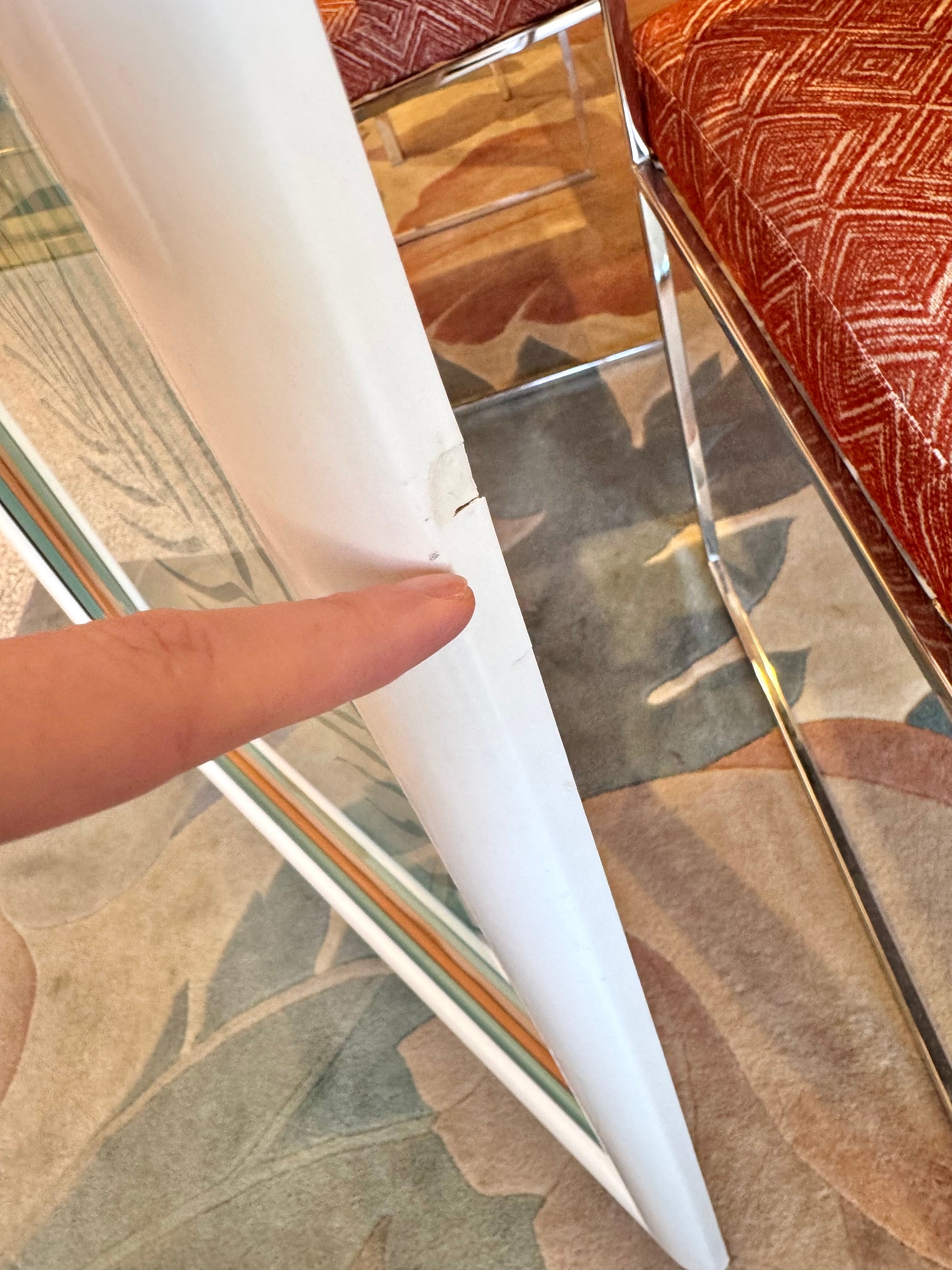 An absolutely stunning tall vintage flamingo lithograph with vibrant colors, in a white lacquer frame. Numbered #51/93, signed Marcel. This is a dramatic, striking piece in gorgeous vivid shades of pink and teal. C.1980's.