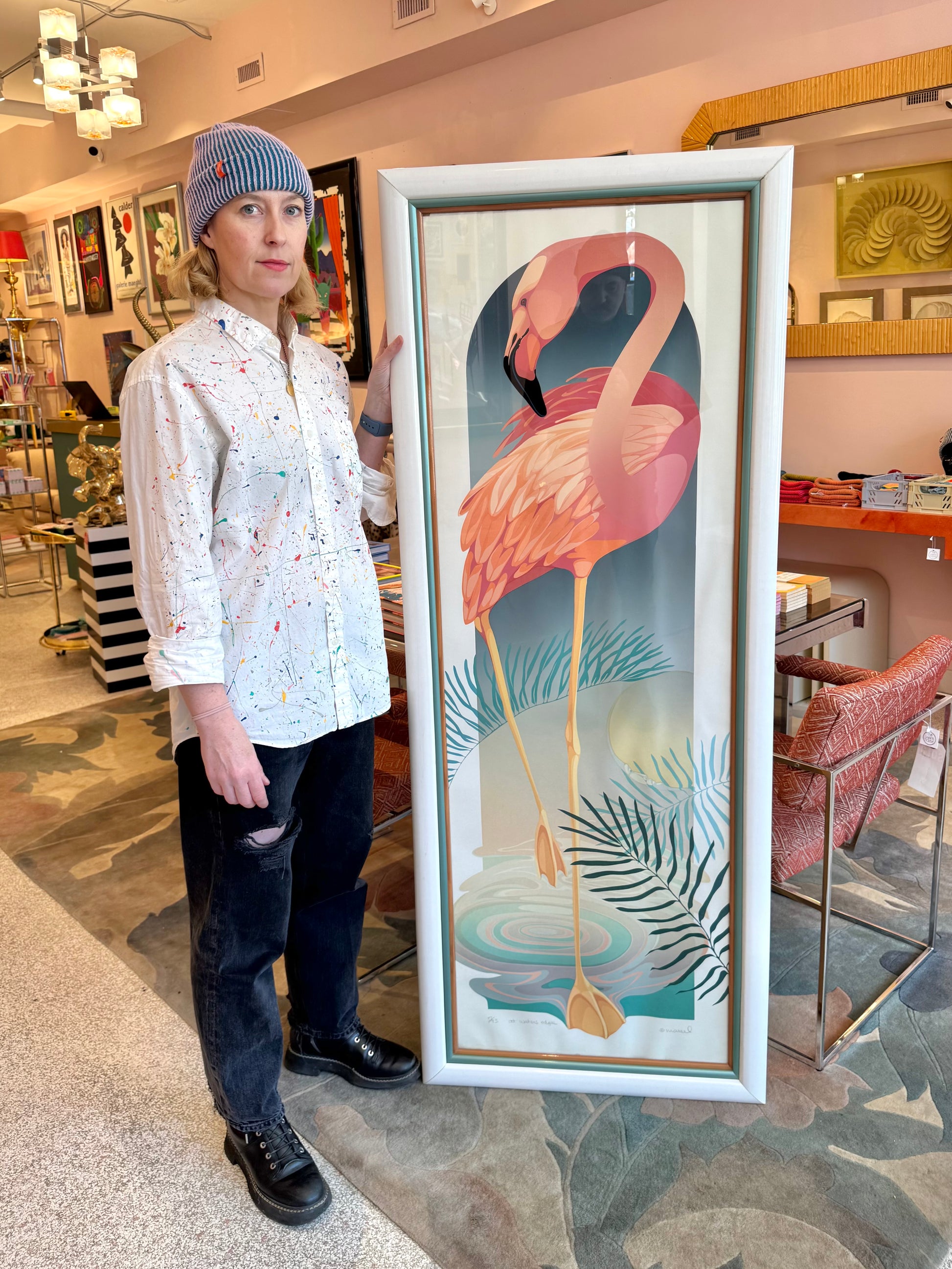 Vintage "At Water's Edge" Flamingo Signed and Numbered Lithograph by Marcel