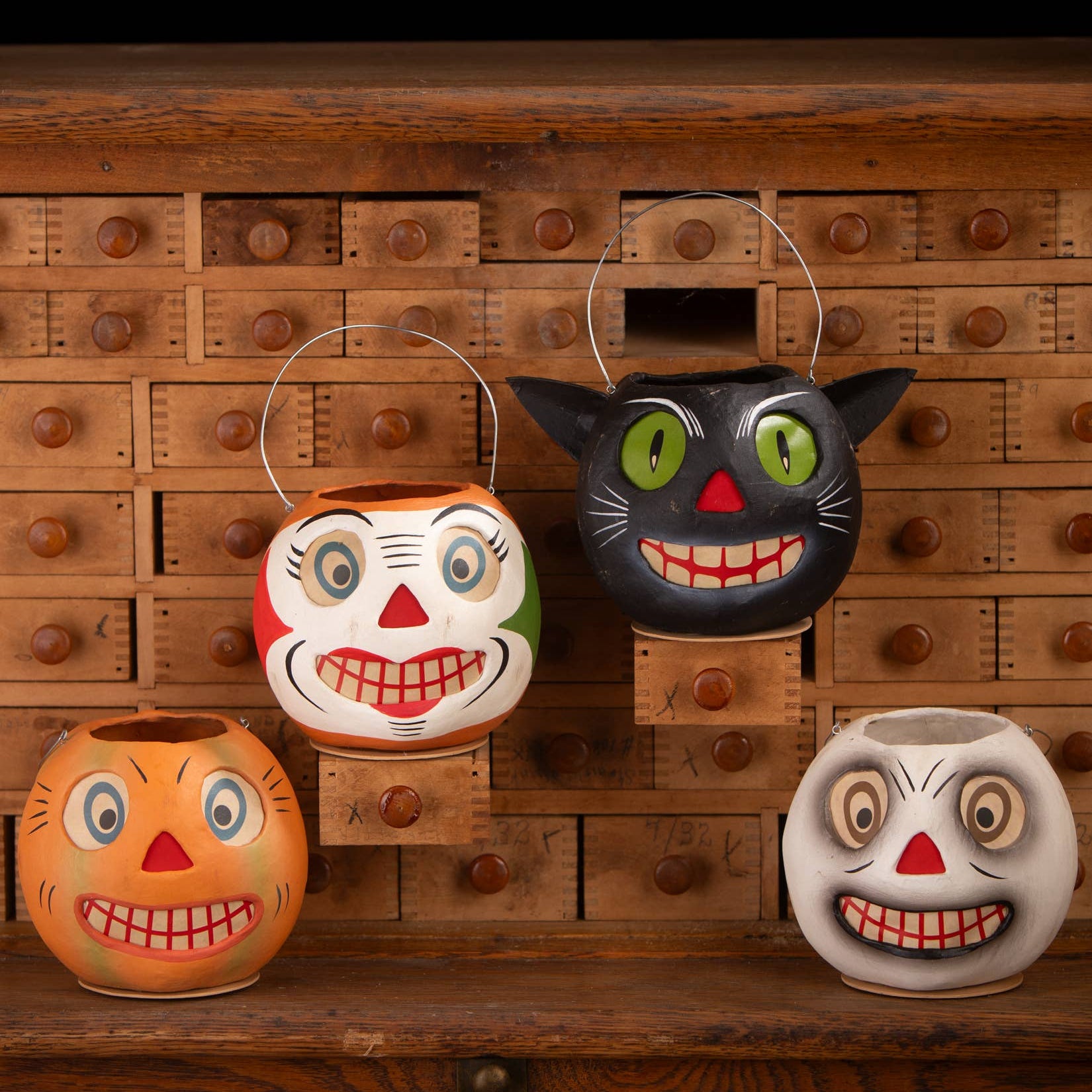 Step right up and embrace the nostalgic charm of our vintage inspired clown bucket! This delightful reproduction captures the whimsical spirit of classic halloween decor, beautifully crafted to mirror the original design. Made from sturdy papier mache. Whether as a standalone halloween decoration or part of your festive collection, this vintage clown bucket is sure to bring smiles and a touch of whimsy to your celebrations!