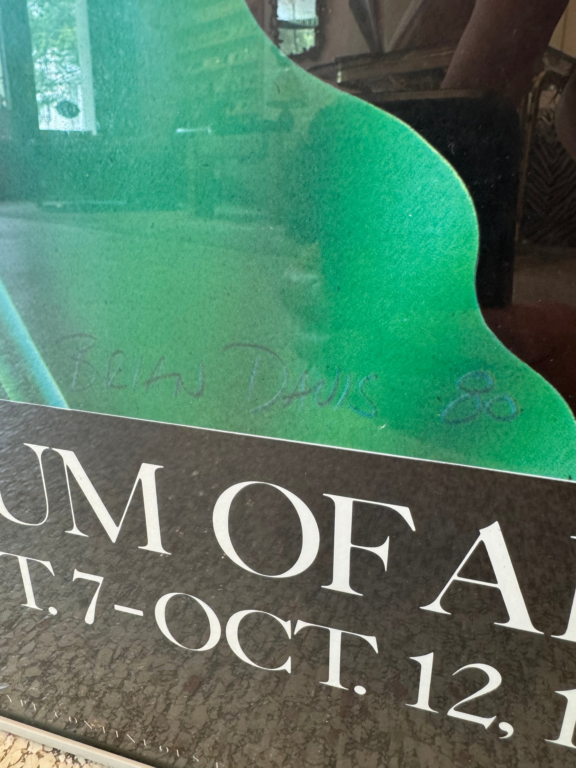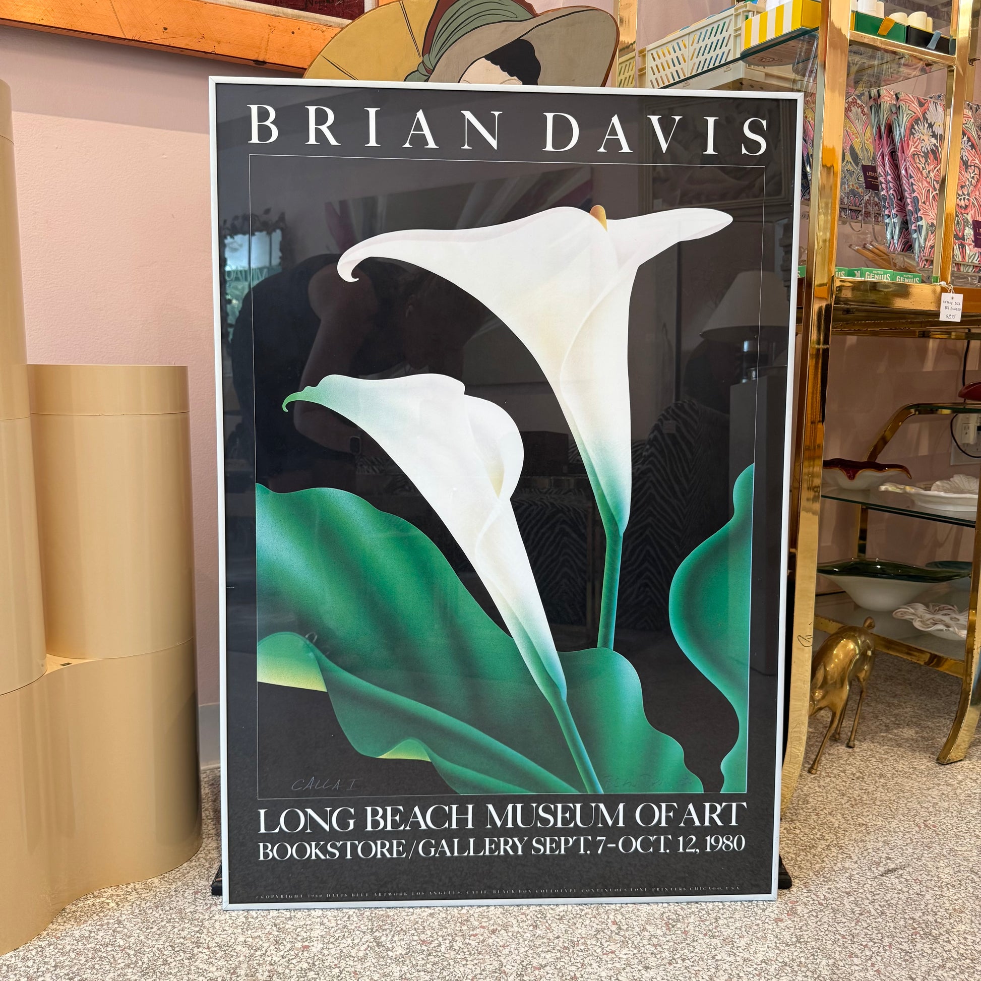 A beautiful framed 1980's exhibition poster titled "Calla 1" by Brian Davis, from Davis's 1980 exhibition held at the Long Beach Museum of Art. Featuring a large dramatic calla lily flower, in a black frame.