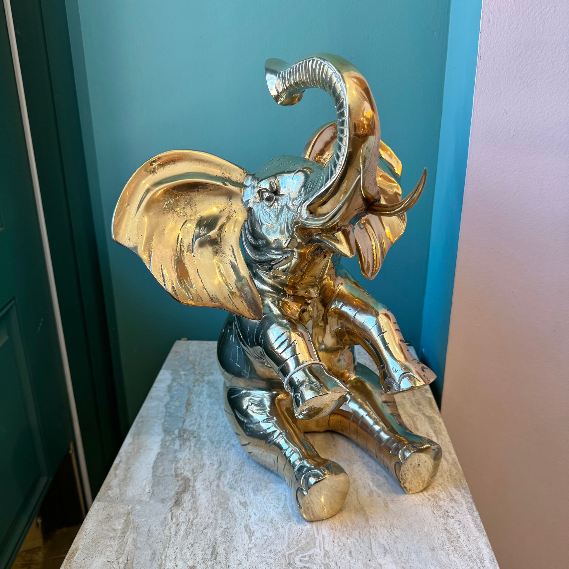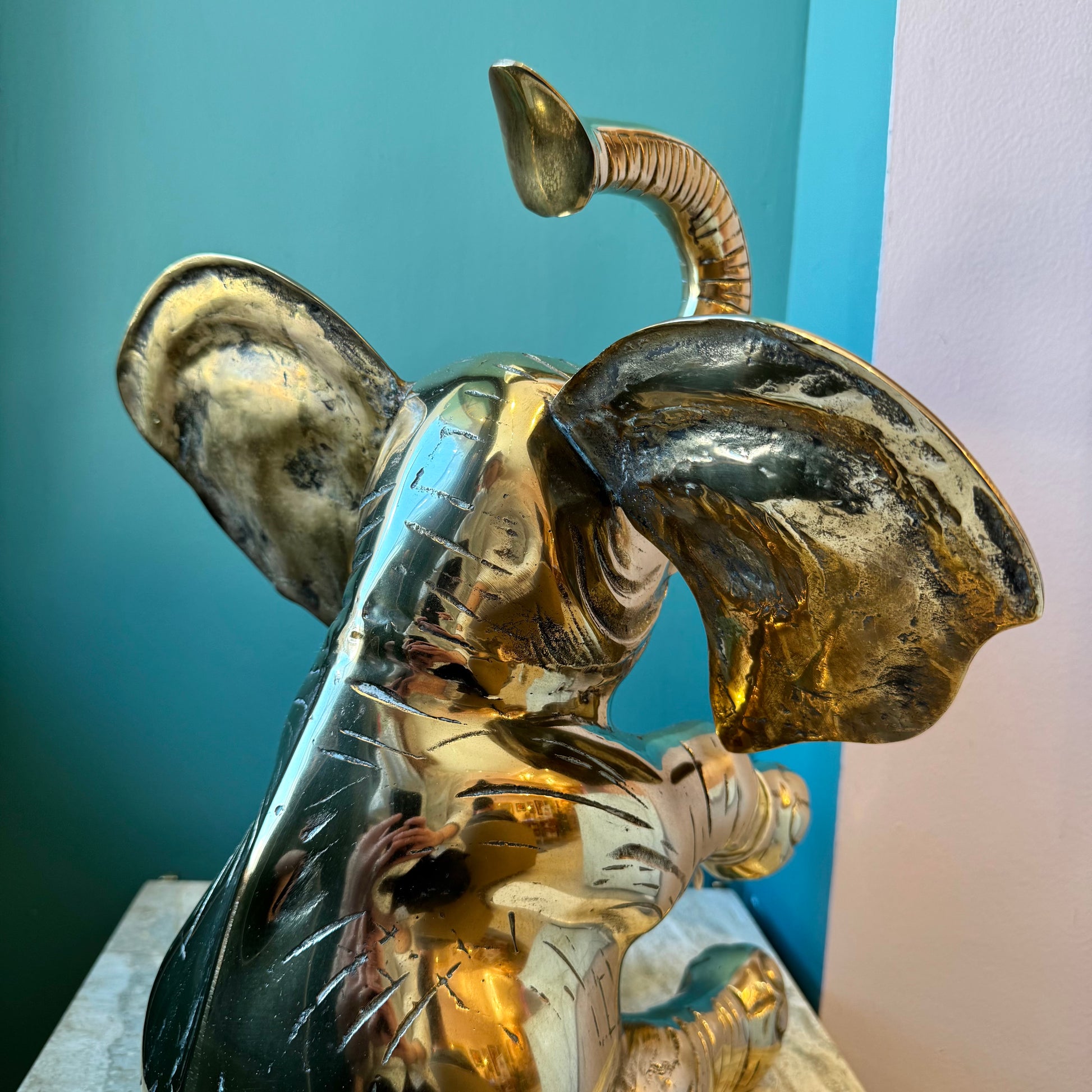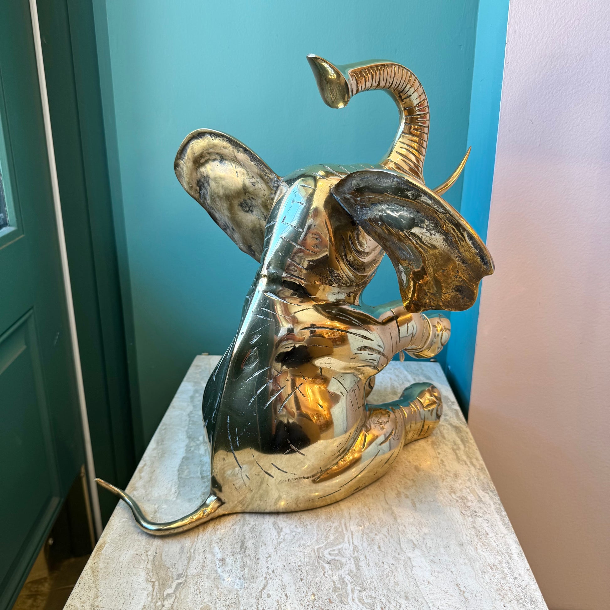 A gorgeous extra large solid brass seated elephant statue. Heavy and impressive! Circa 1970's. Weighs over 16lbs.