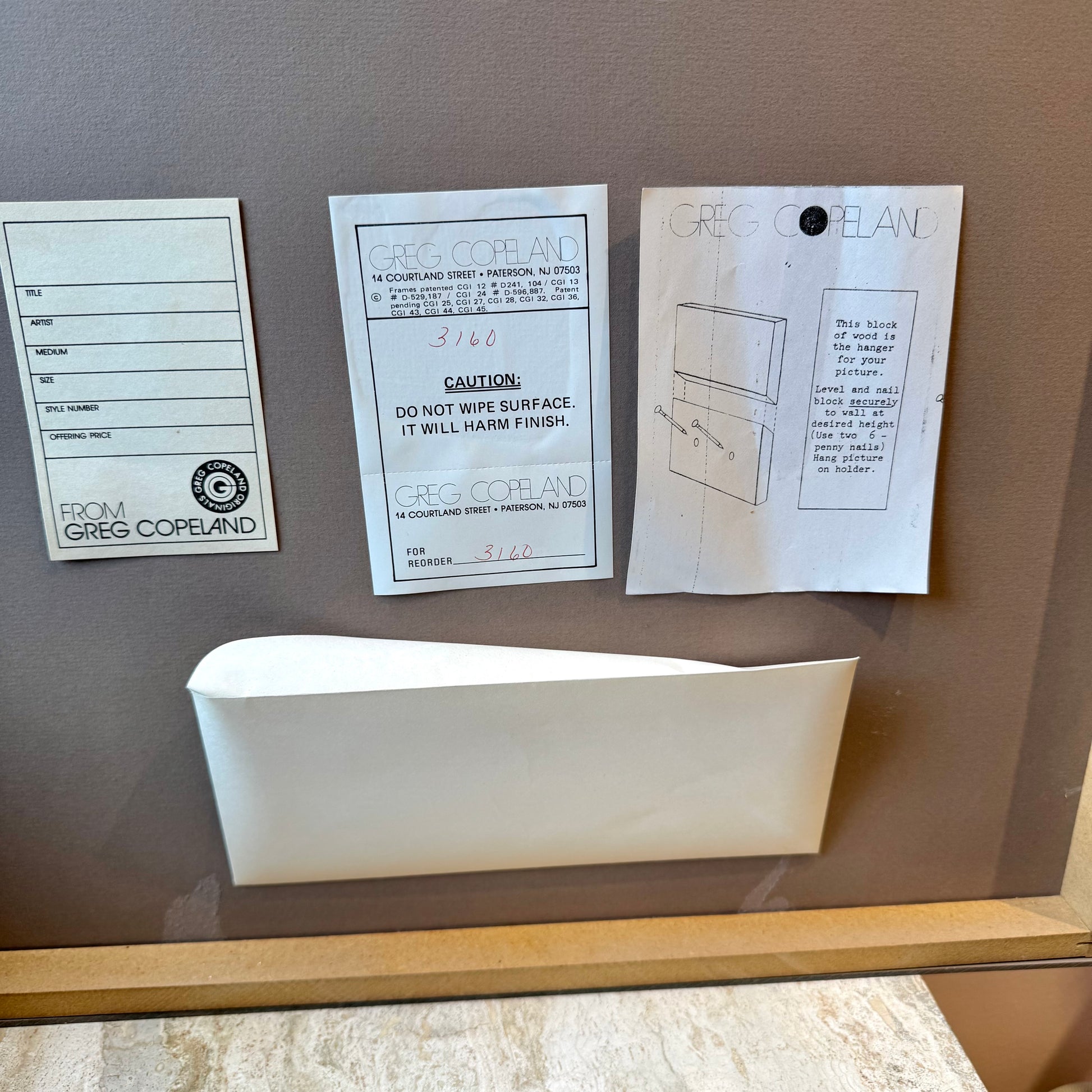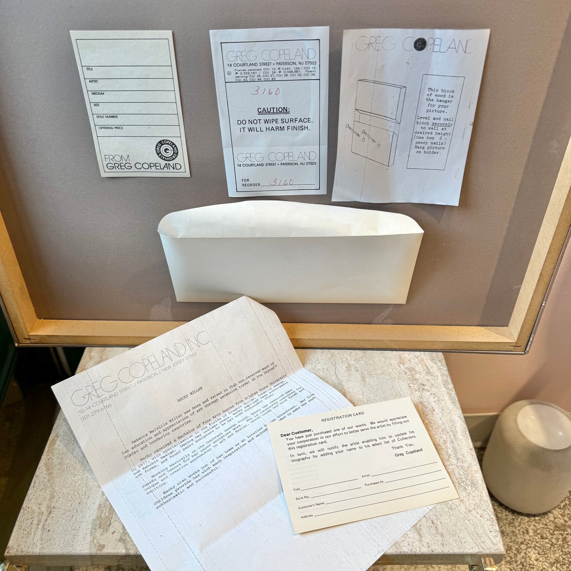 A stunning original 3D paper sculpture artwork by Rebecca Miller for Greg Copeland. in a box frame with taupe border and brass colored trim detailing. French clear on back for safe, secure hanging. Full original paperwork and documentation included.