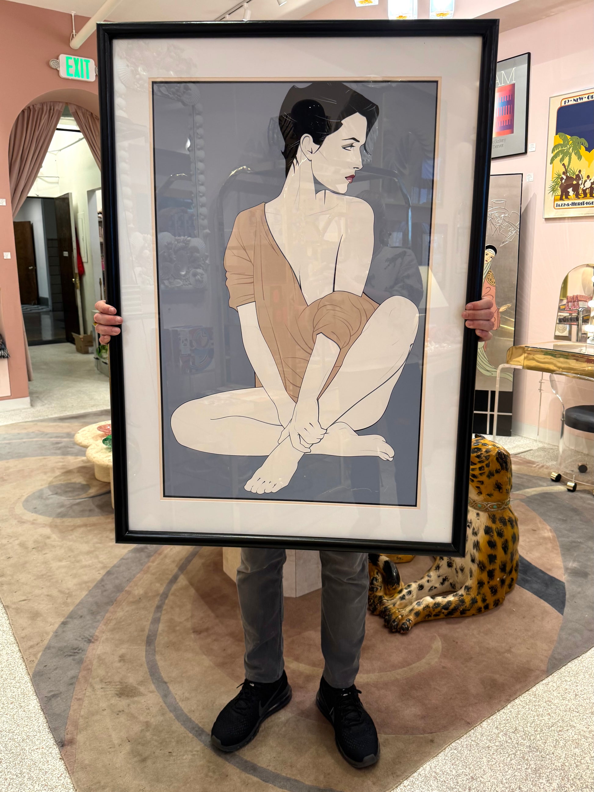 This artwork was created in 1984 as part of a series of 15 commemorative silkscreens produced after Nagel's death. Nagel's distinctive style, which defined an era, is known for it's high contrast color palette, bold outlines, and depictions of strong women, drawing influence from Art Deco. His work gained significant popularity in the 1980's, including the creation of the iconic cover art for the Duran Duran album Rio.