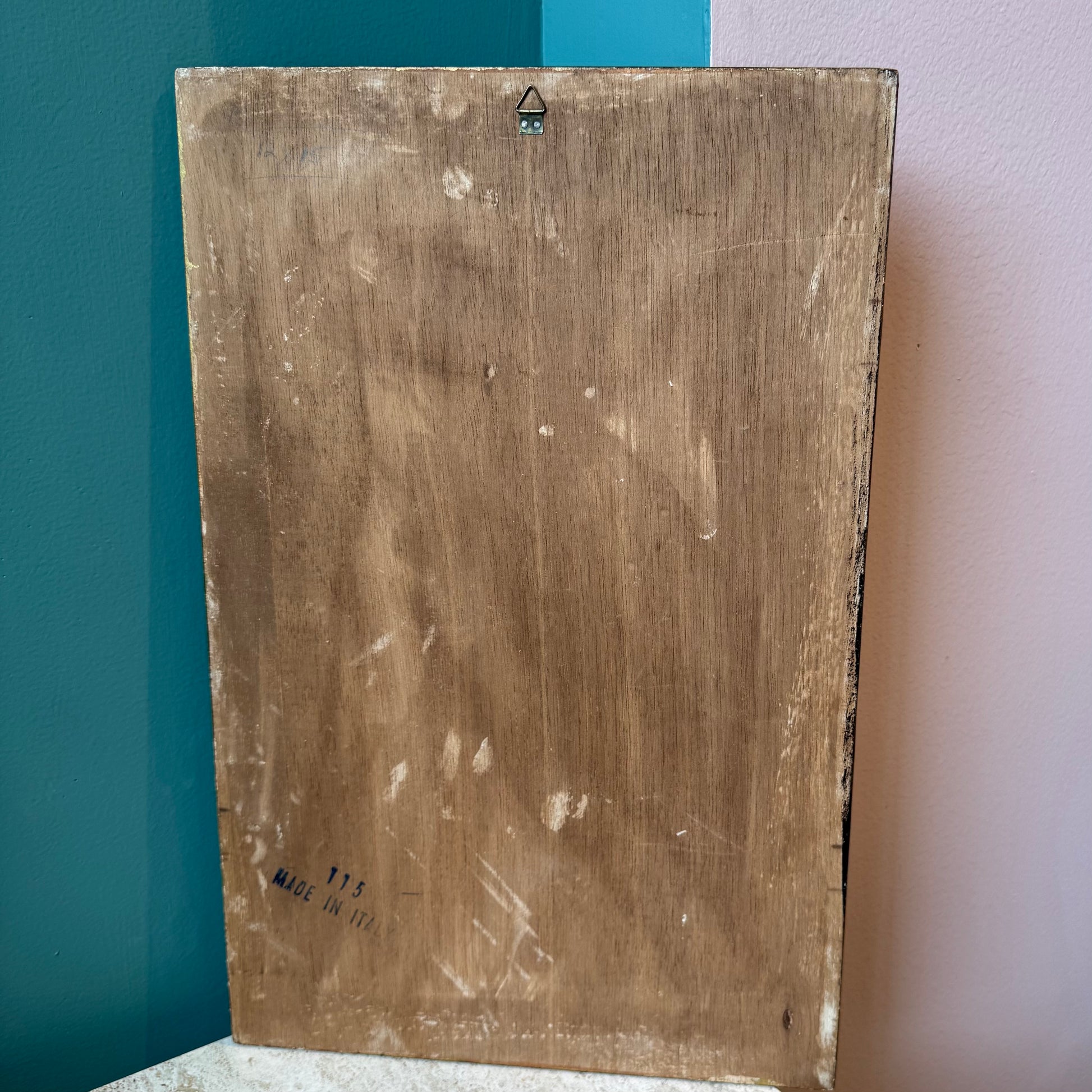 A wonderful vintage artwork on wooden board, featuring the first hot air balloon, flown by Jean-François Pilâtre de Rozier and Pierre Romain. This was a hybrid aircraft using both hydrogen and hot air. The design, now known as a Rozière balloon, was created by de Rozier in an attempt to cross the English Channel in 1785.