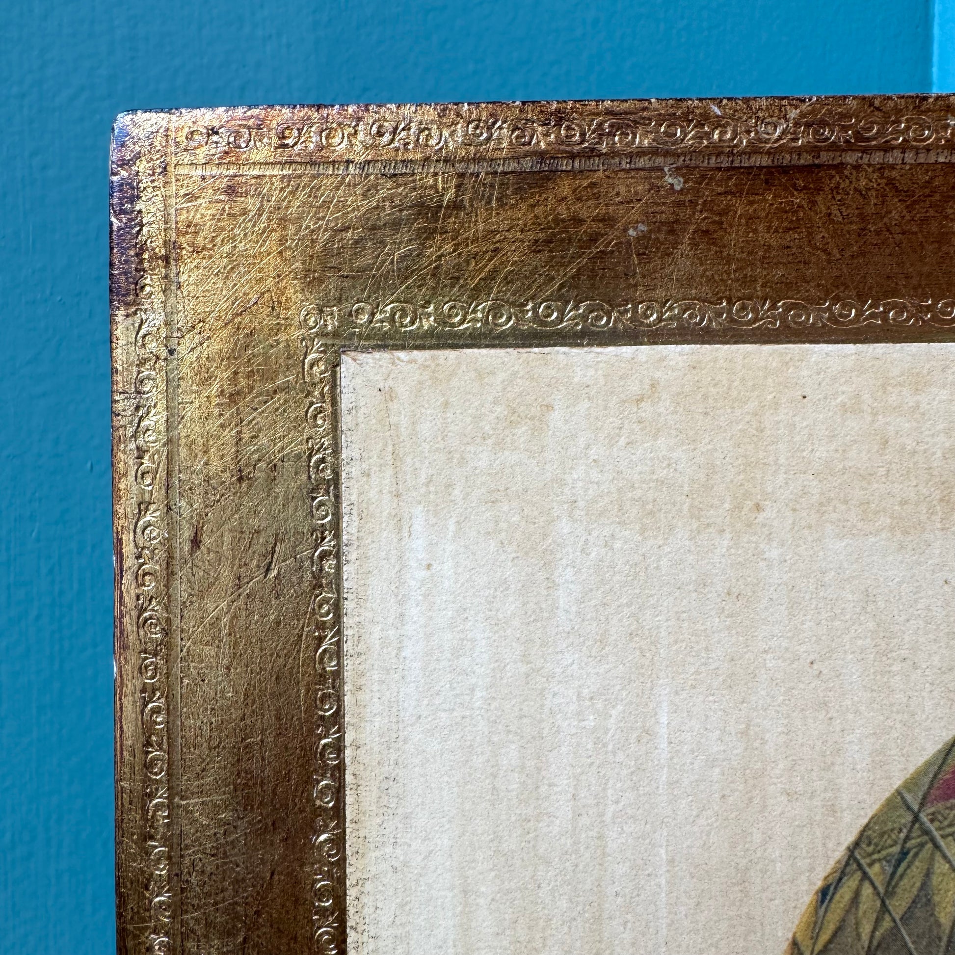 Vintage Italian Hot Air Balloon Artwork with Gold Gilded Border