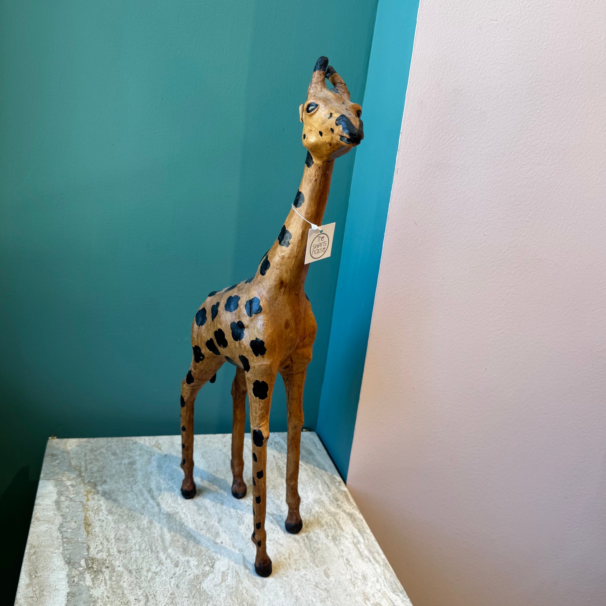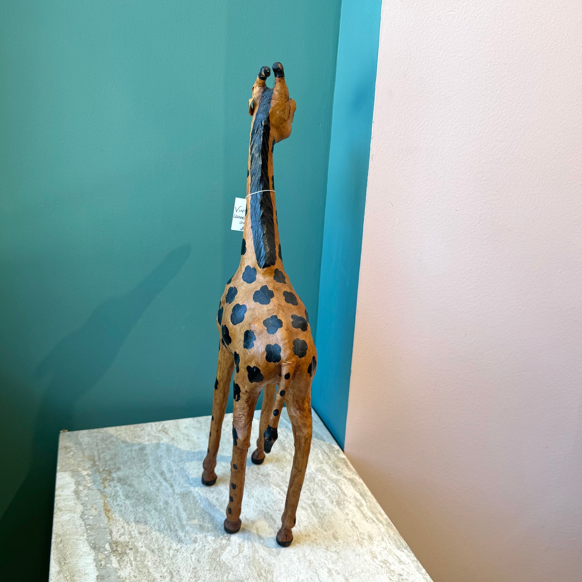 Lovely vintage leather giraffe statue with lots of great detail and personality. C.1960's.