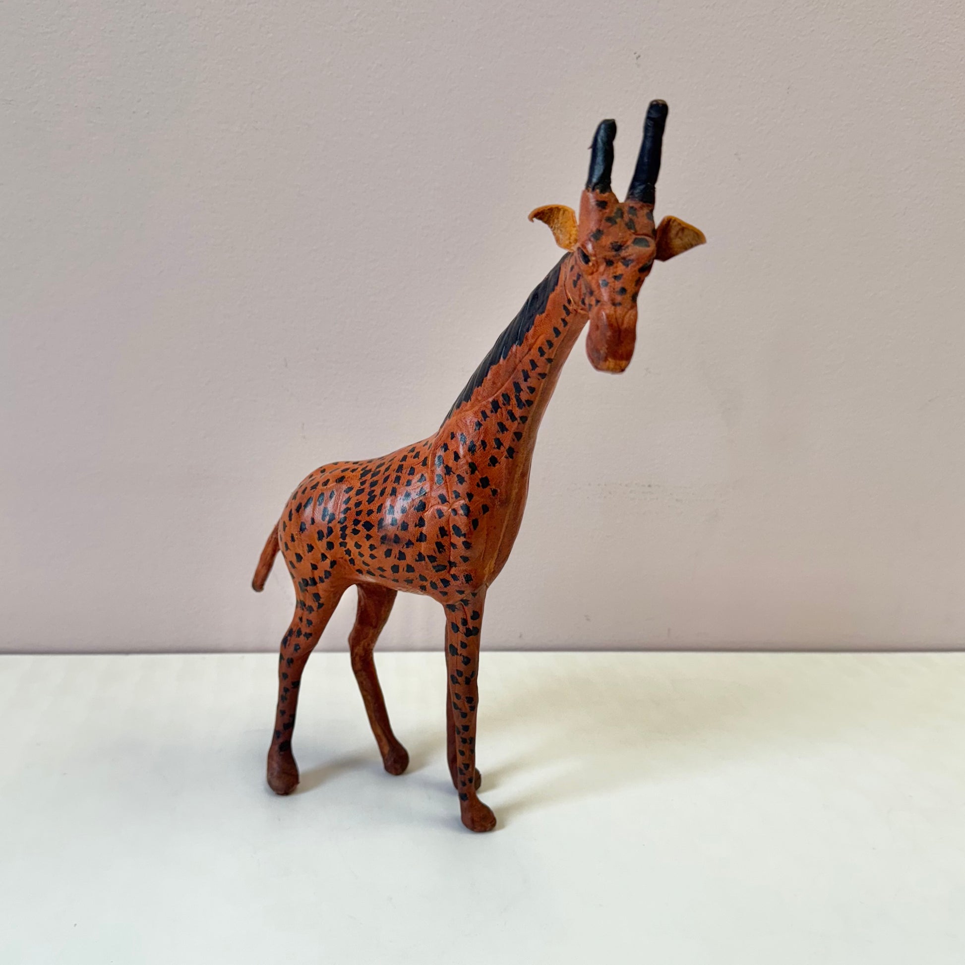 Lovely vintage leather giraffe statue with lots of great detail and personality. C.1960's.
