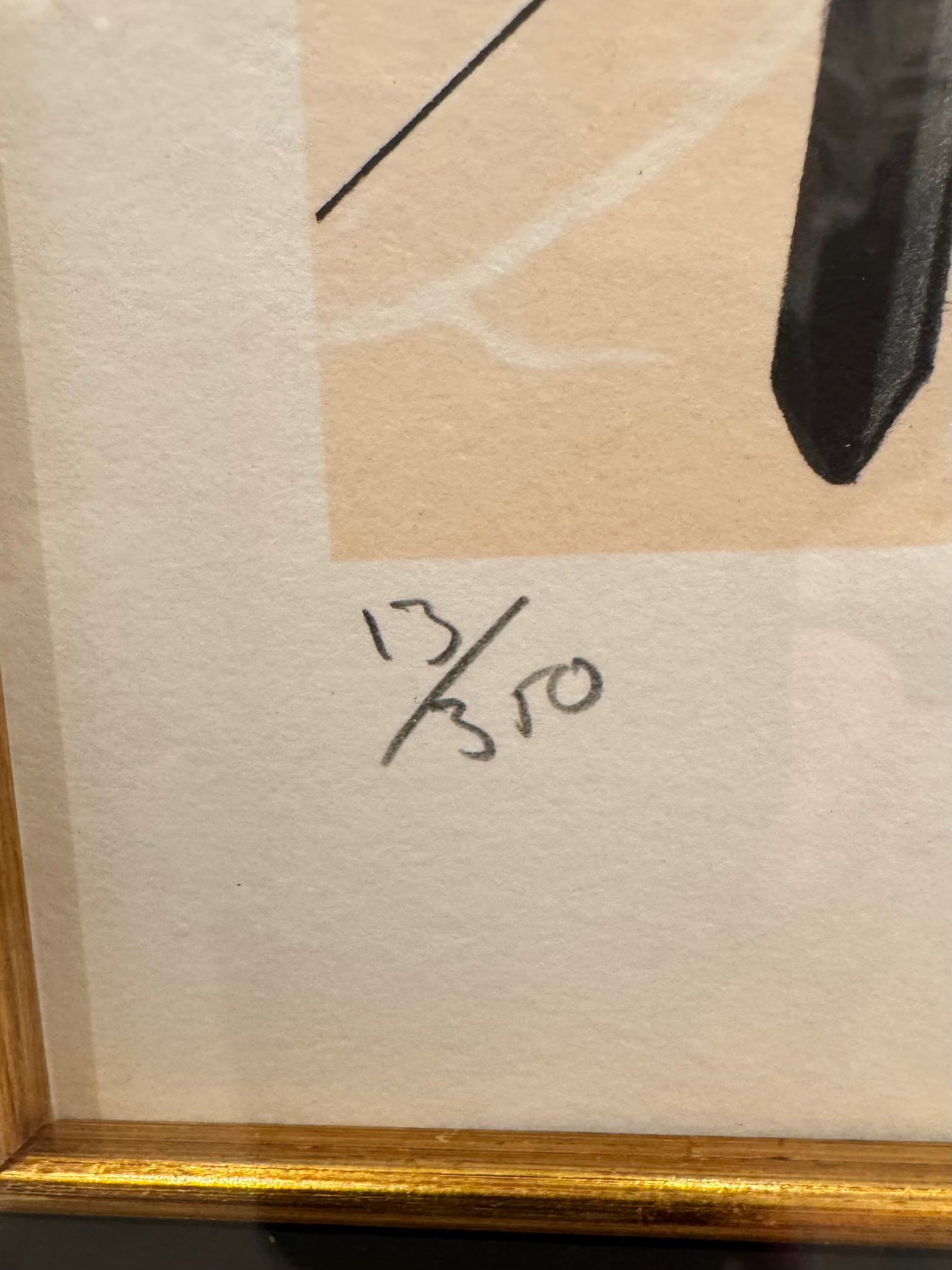 Condition: There are some minor signs of wear to the frame. The artwork has one very difficult to see wrinkle in the top center. Overall very good vintage condition.
