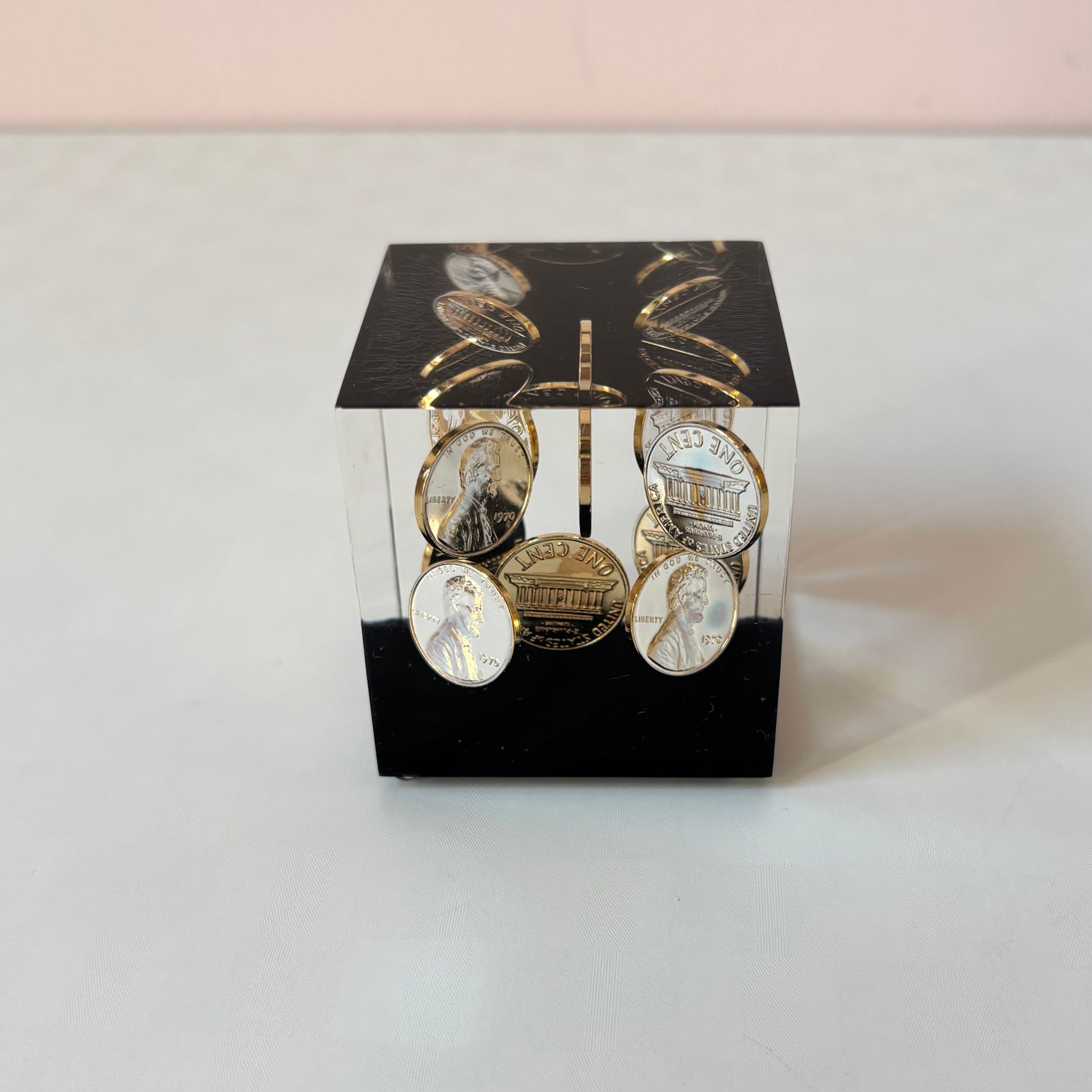 Vintage Lucite 1970 Penny Paperweight