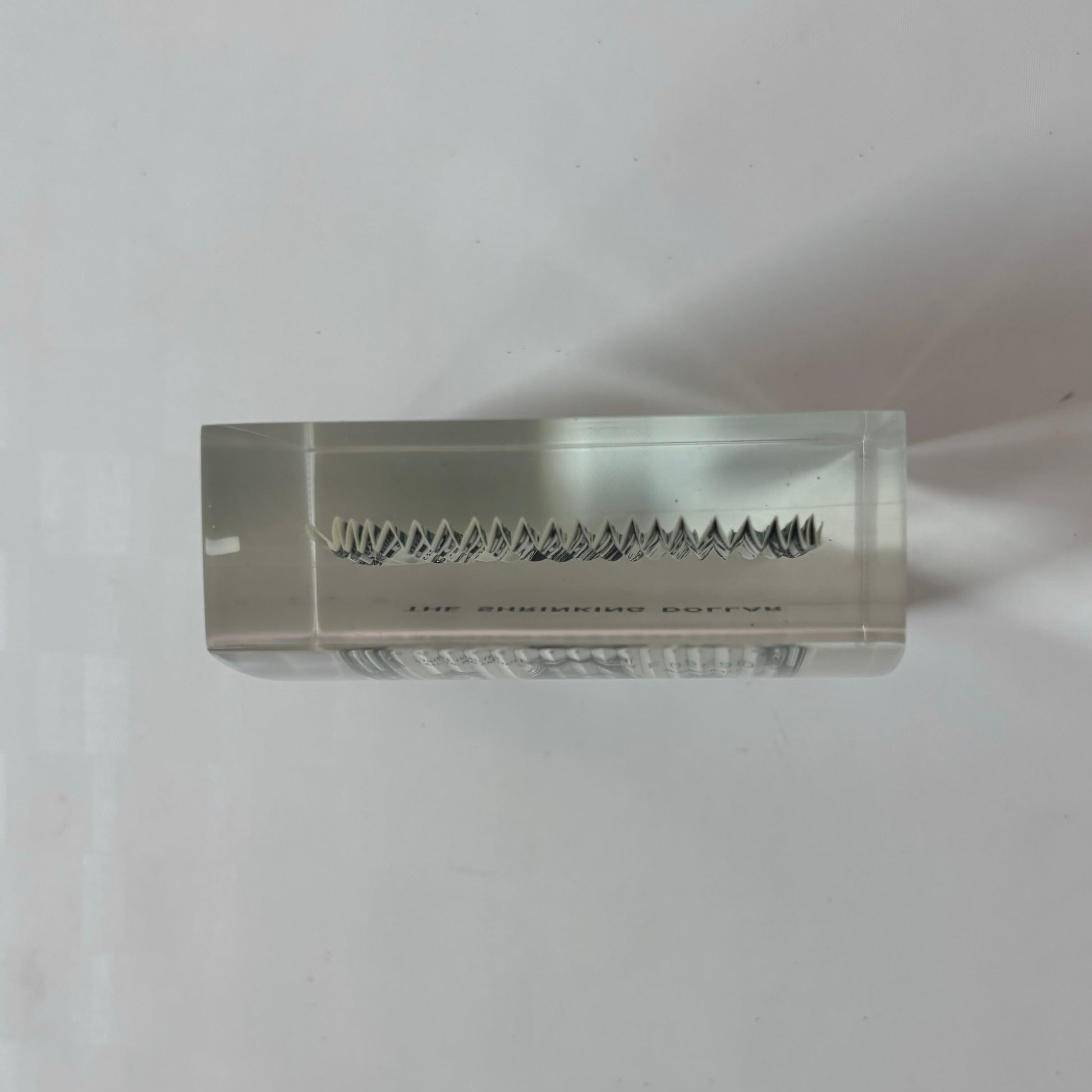 Vintage Lucite Encased "Shrinking Dollar" Paperweight