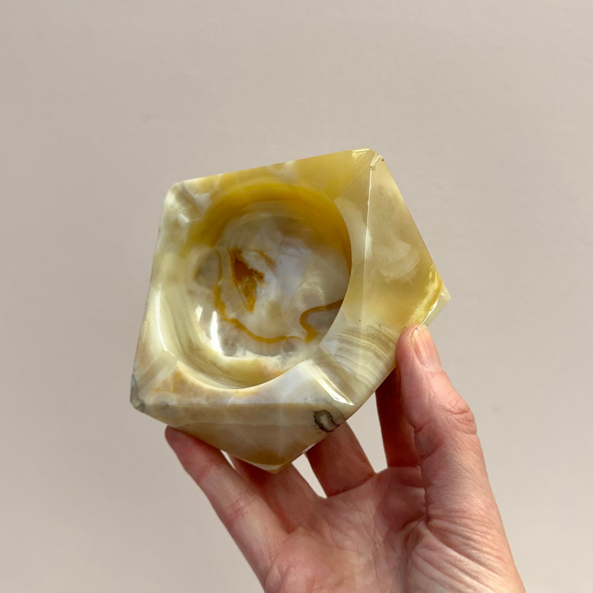 A beautiful vintage onyx stone ashtray in angular faceted design. C.1960’s.
