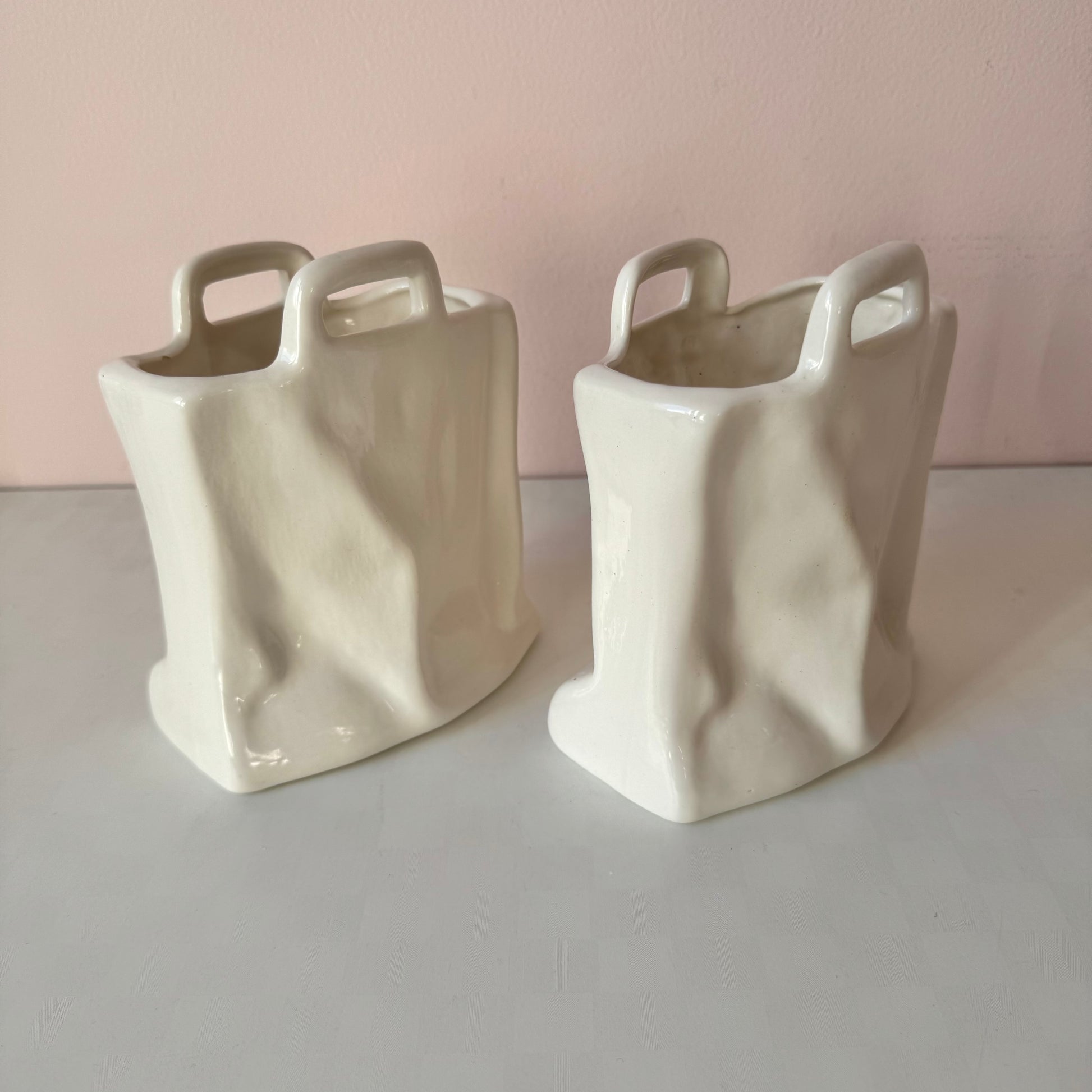 Vintage Pair of Ceramic "Paper Bag" Containers