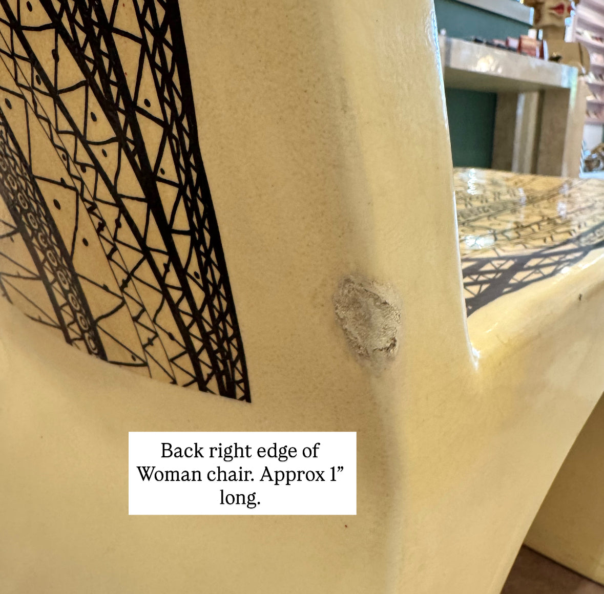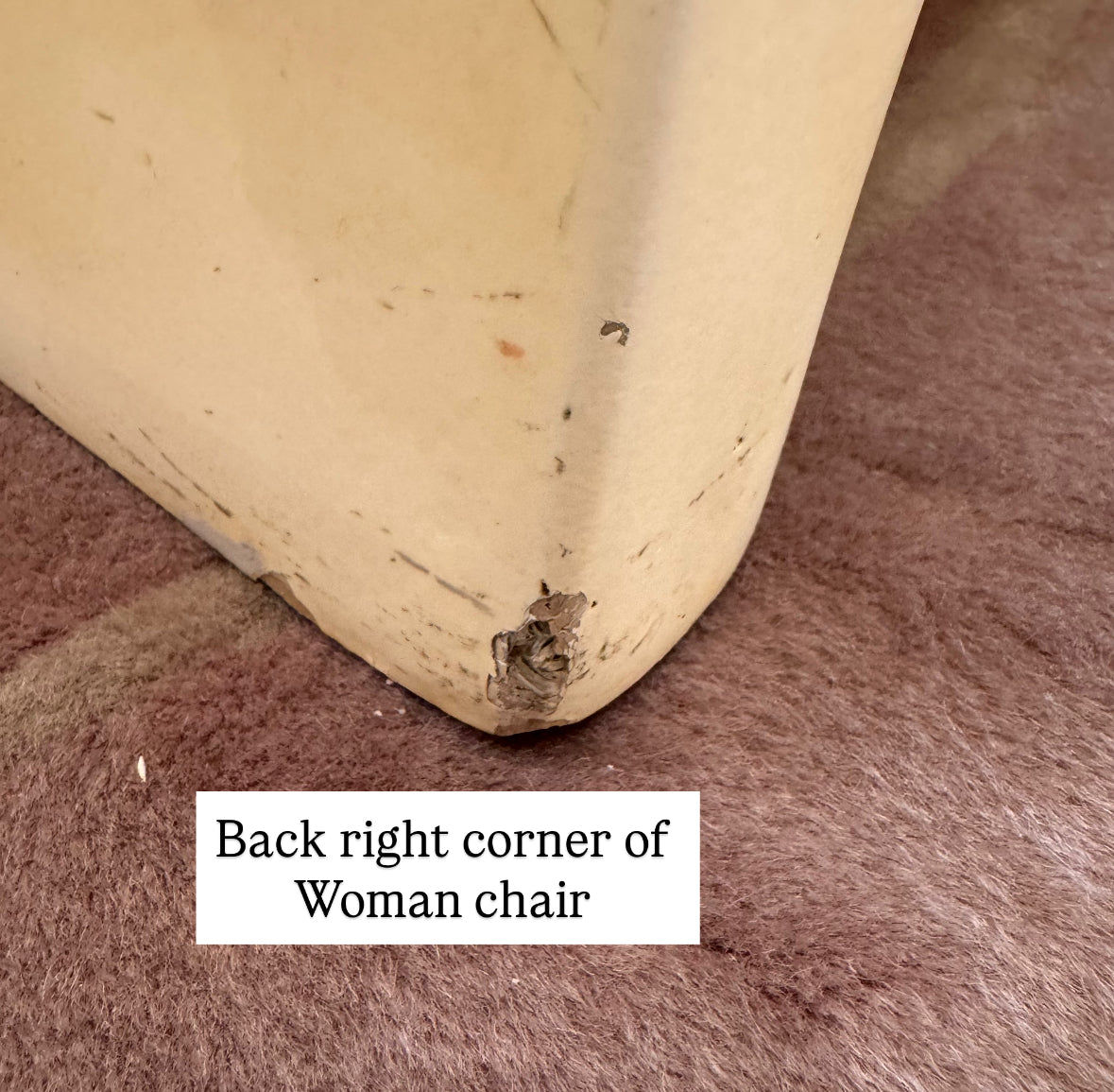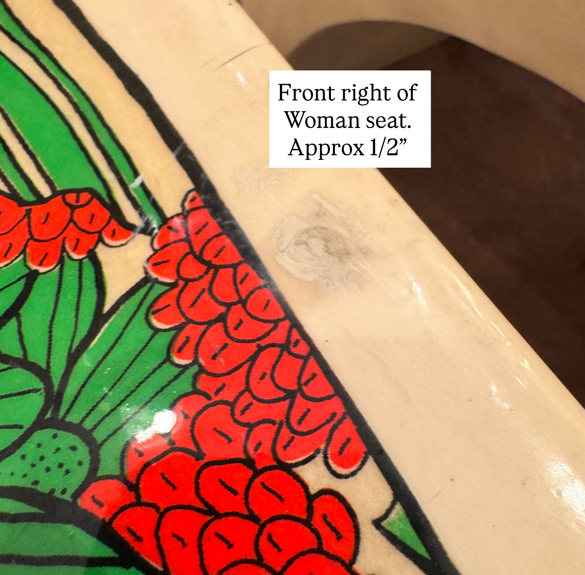 Condition: Moderate wear along base with some chips and abrasions around kick and on back edges and corners. Some discoloration to woman's left shoulder/arm area. See pics for clear condition.