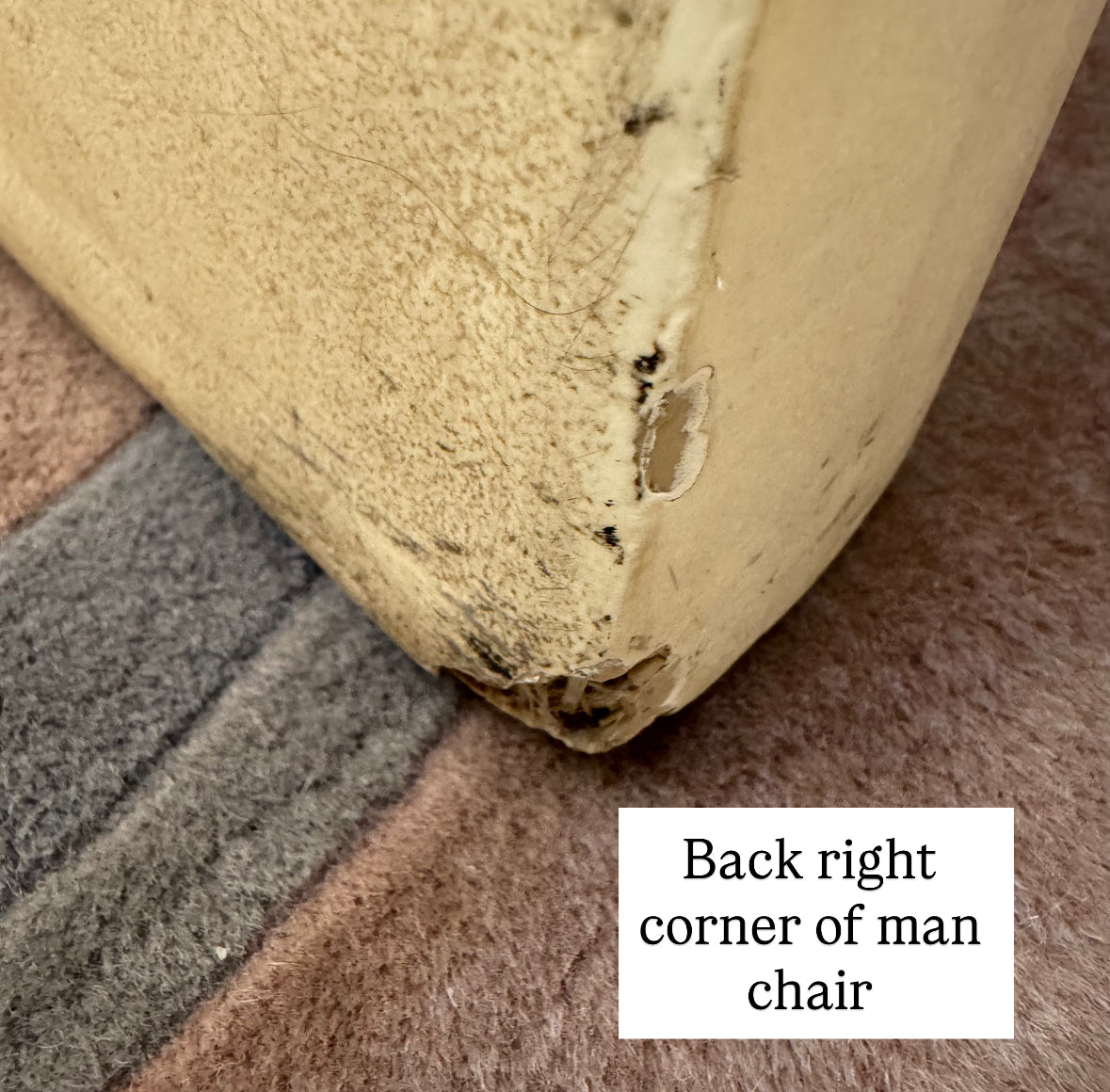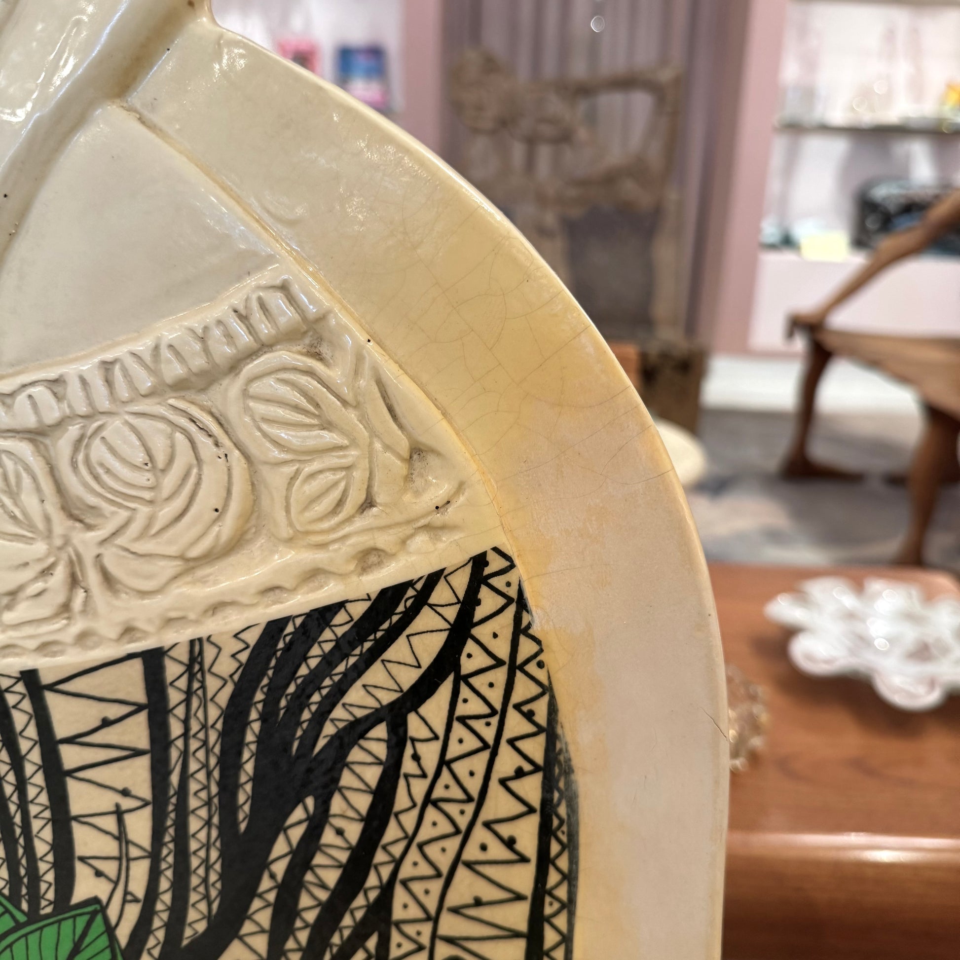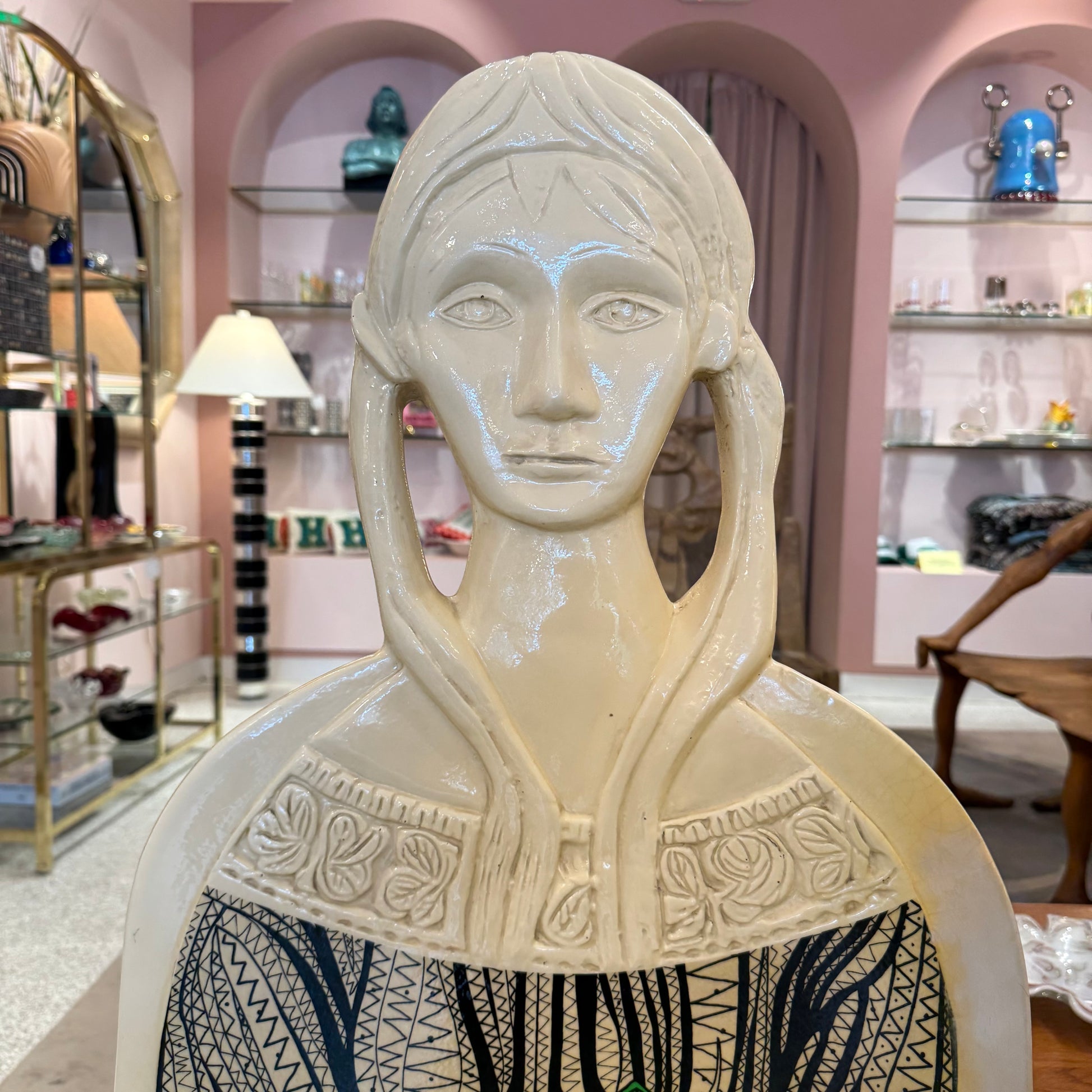 Condition: Moderate wear along base with some chips and abrasions around kick and on back edges and corners. Some discoloration to woman's left shoulder/arm area. See pics for clear condition.