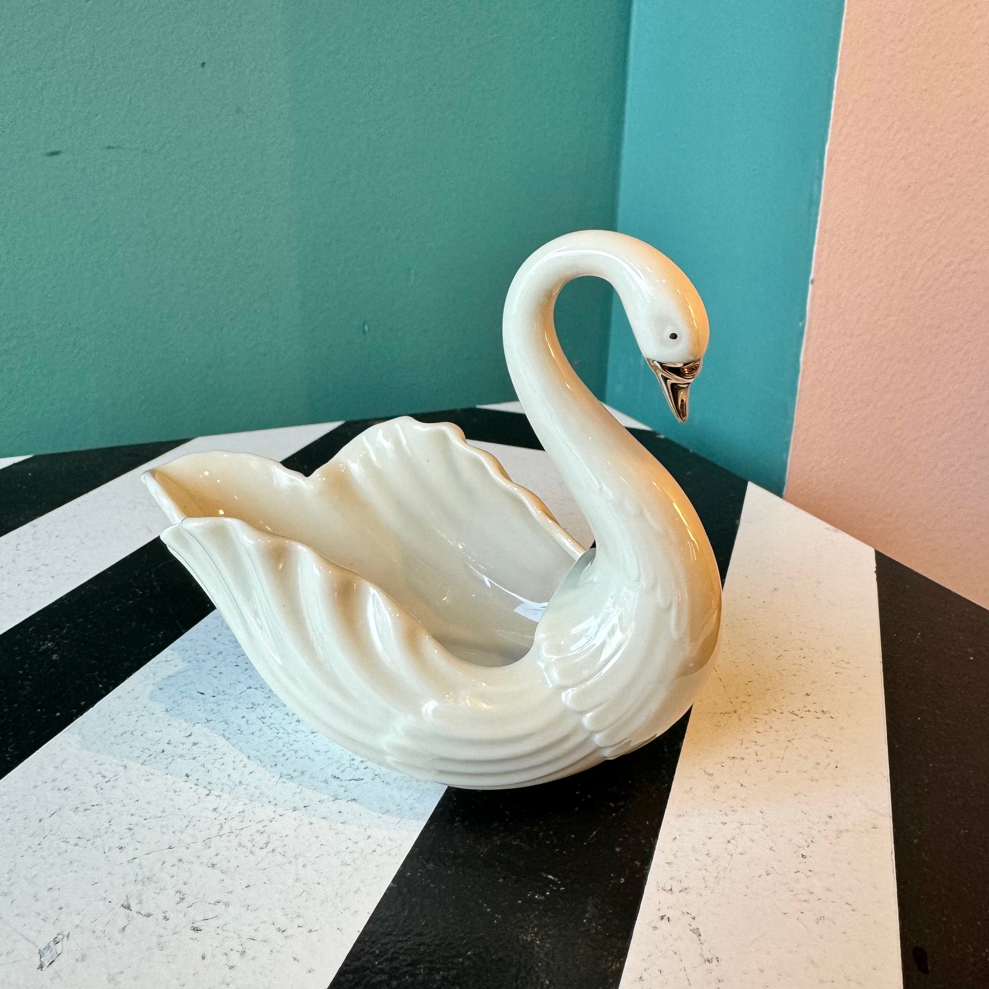 Beautiful vintage porcelain swan with silver beak by Lenox. Stamped on underside.