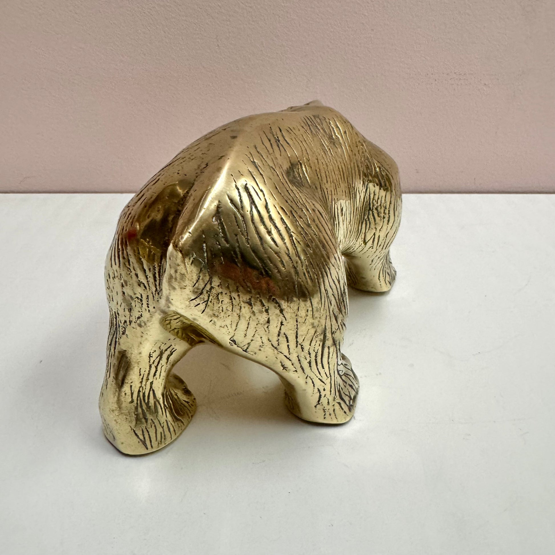 A stunning heavy solid brass bear statue. This is a rare piece with strong character and vintage charm. C.1970's.