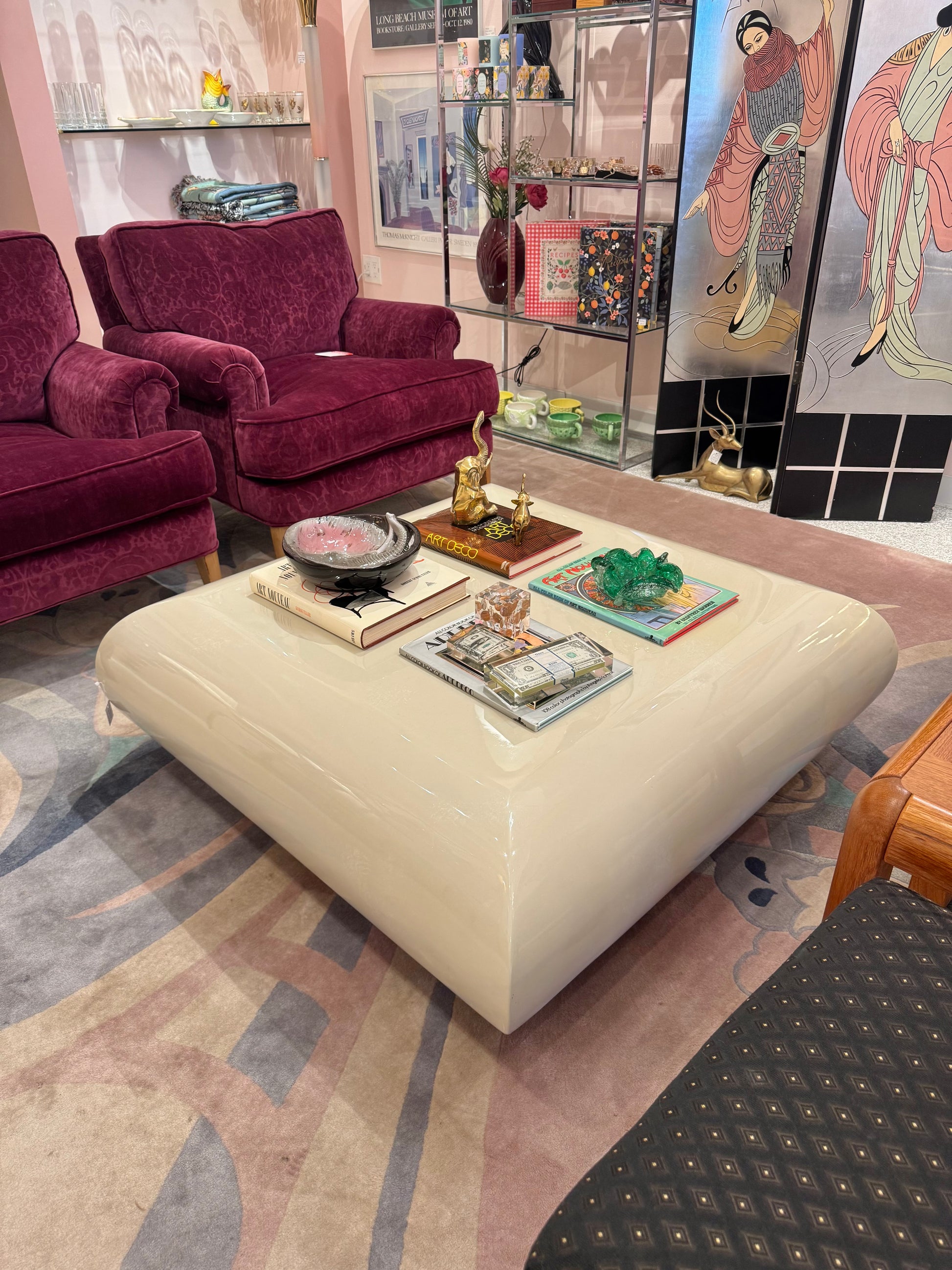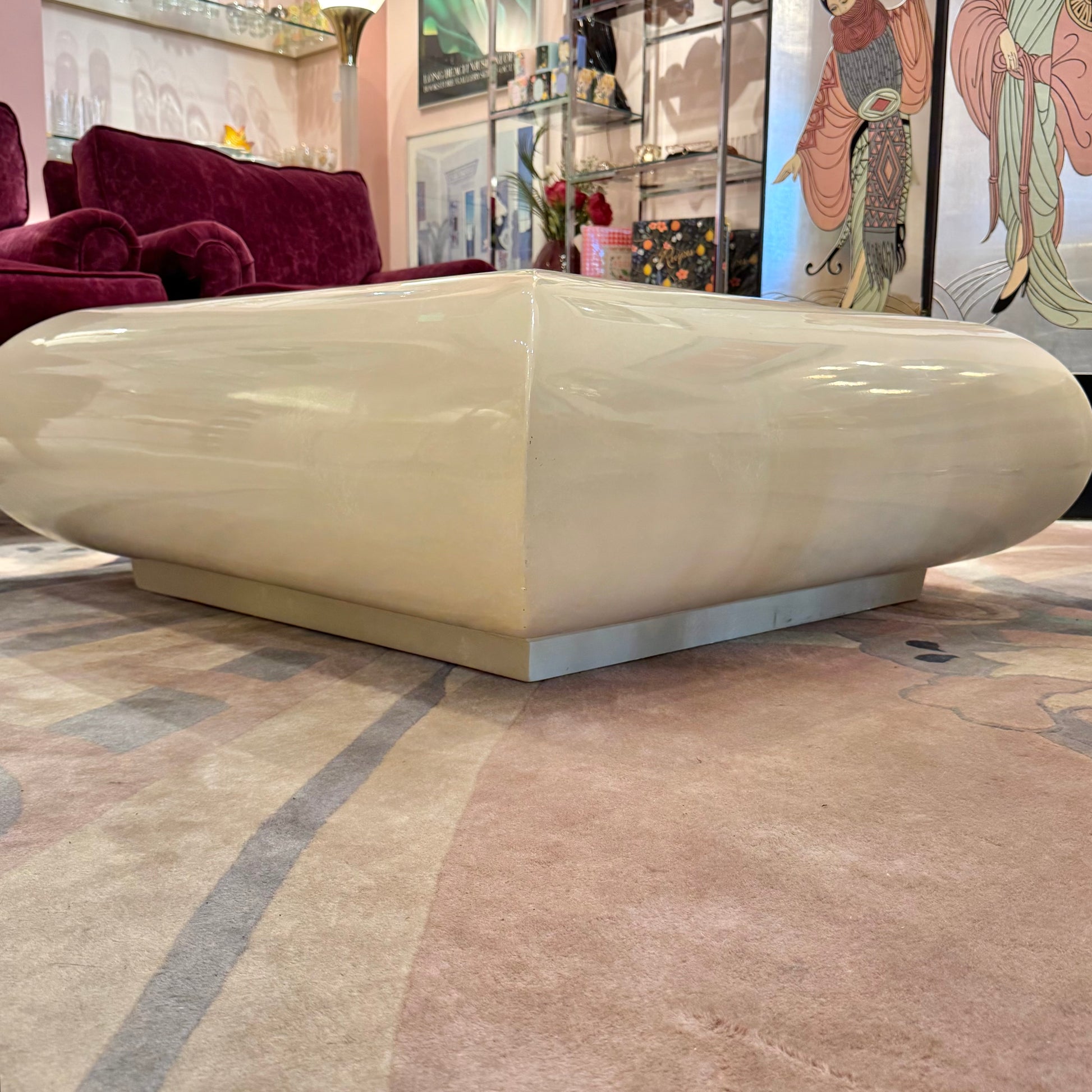 Vintage Square Waterfall Edge Taupe Lacquer Coffee Table