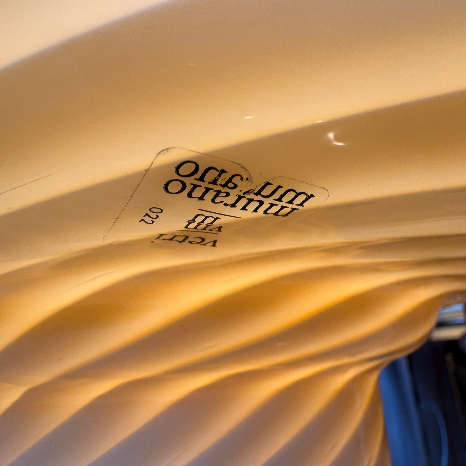 A spectacular vintage hand blown Vetri Murano glass mushroom lamp, in a creamy yellow color with opening at top and original sticker still affixed. C.1970's.